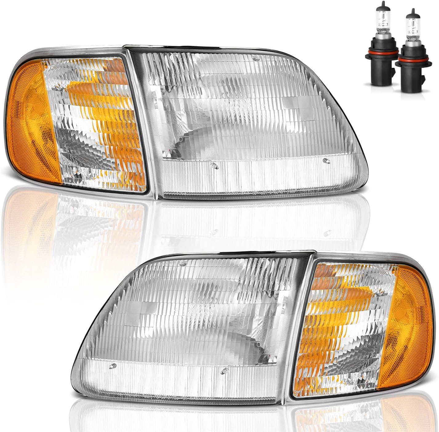 WEELMOTO Headlights Assembly for 1997-2003 F150 / 1997-2002 Ford Expedition / 1998-1999 F250, Headlamp+Corner Parking Turn Signal Marker Light Does NOT fit models produced before July 1996
