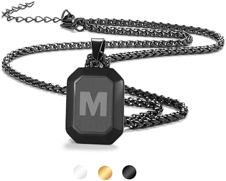 Bellino Easter Basket Stuffers - Initial A-Z Letter Necklace for Men Boys Kids Teen, Stainless Steel American Flag Dog Tag Pendent Chain Jewelry Christmas Gifts for Men Kids Teens - 24Inches