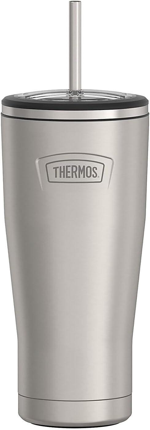 THERMOS ICON SERIES, Stainless Steel Cold Tumbler with Lid and Straw - 24 Ounce, Matte Stainless Steel - Vacuum Insulated Tumbler