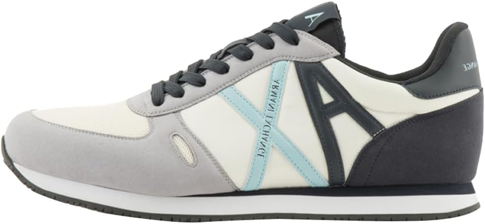 A|X Armani Exchange Rio lace-up Sneaker with A|X side logo, A|X log tongue, and Armani Exchange back logo.