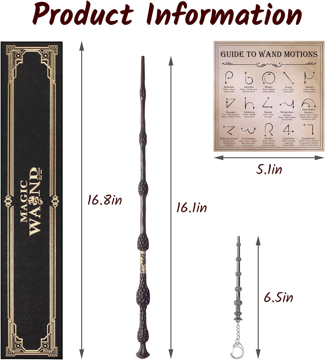 Regalo perfecto: la exquisita varita de brujería, la guía de movimientos de la varita especialmente preparada para principiantes y el llavero vienen en una bonita caja de regalo. Es una idea de regalo para Halloween y Navidad.