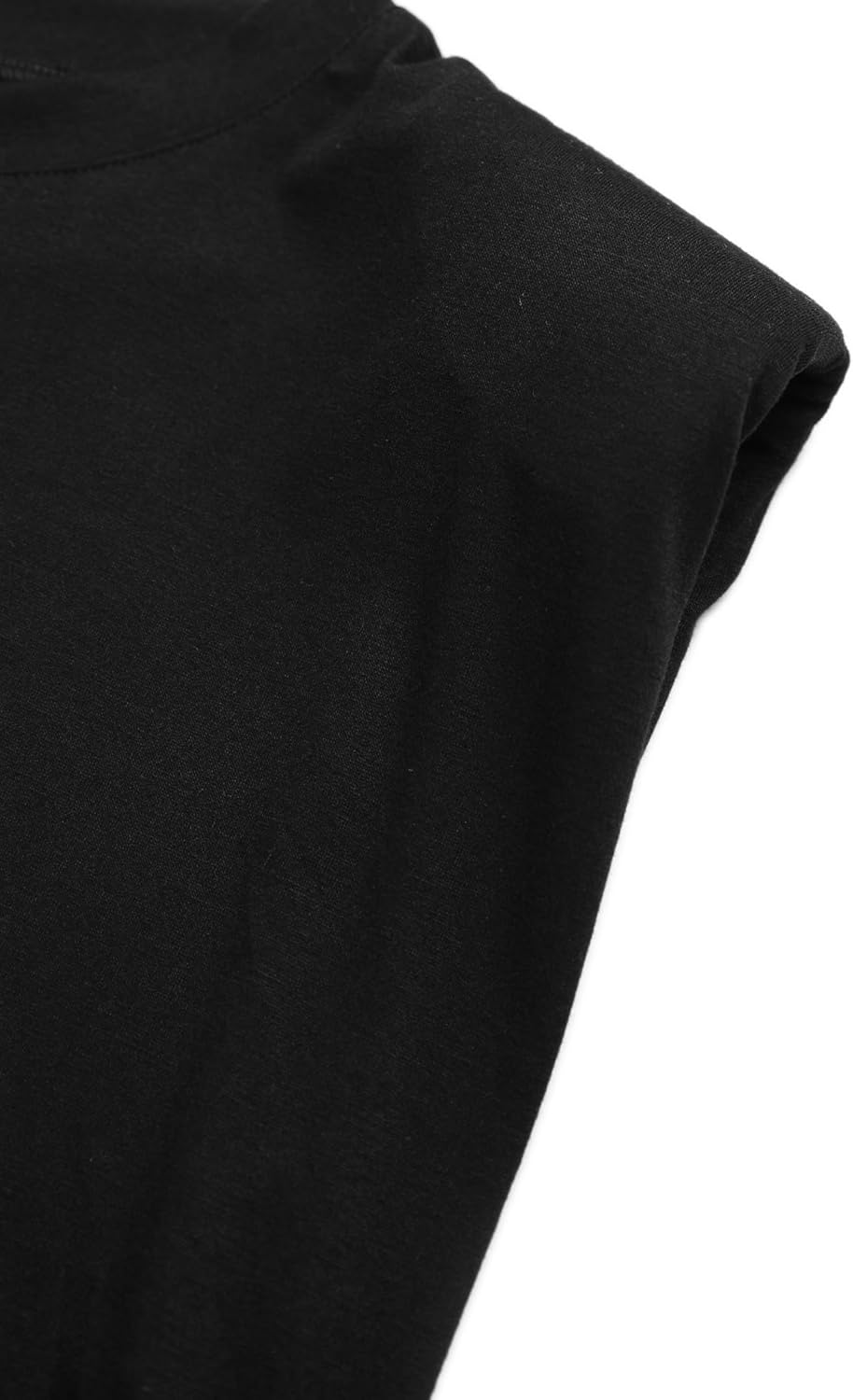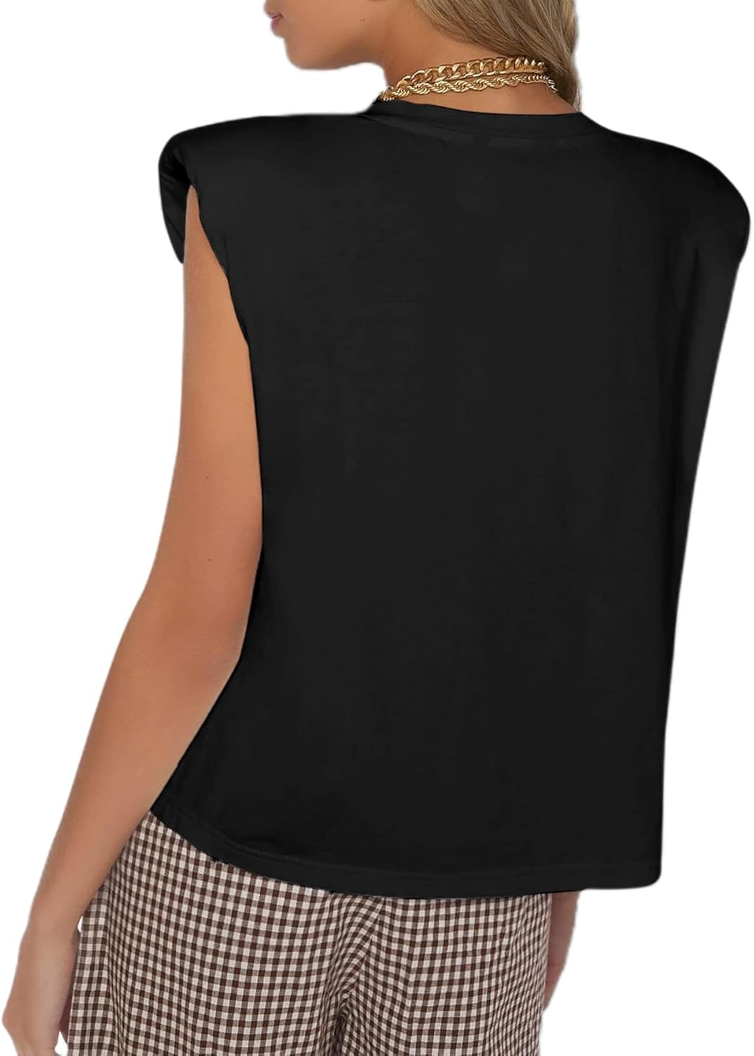 SOFIA'S CHOICE Women's Shoulder Pad Tops Summer Casual Tank Top Round Neck Loose Sleeveless Shirt