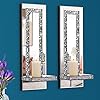 Dimension and Material : Mirrored wall candle sconces Overall size 15"×5"×4.4", High-quality beveled silver mirror on top, with luxurious crushed diamond shape in middle, Shiny sparkly. Back with strong MDF construction.