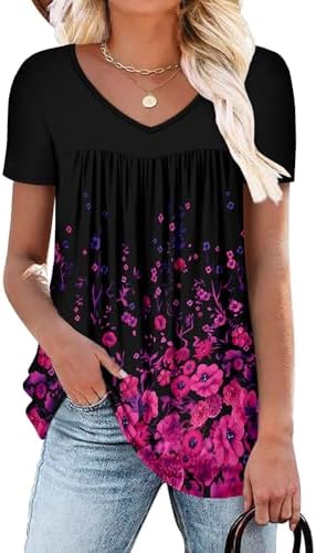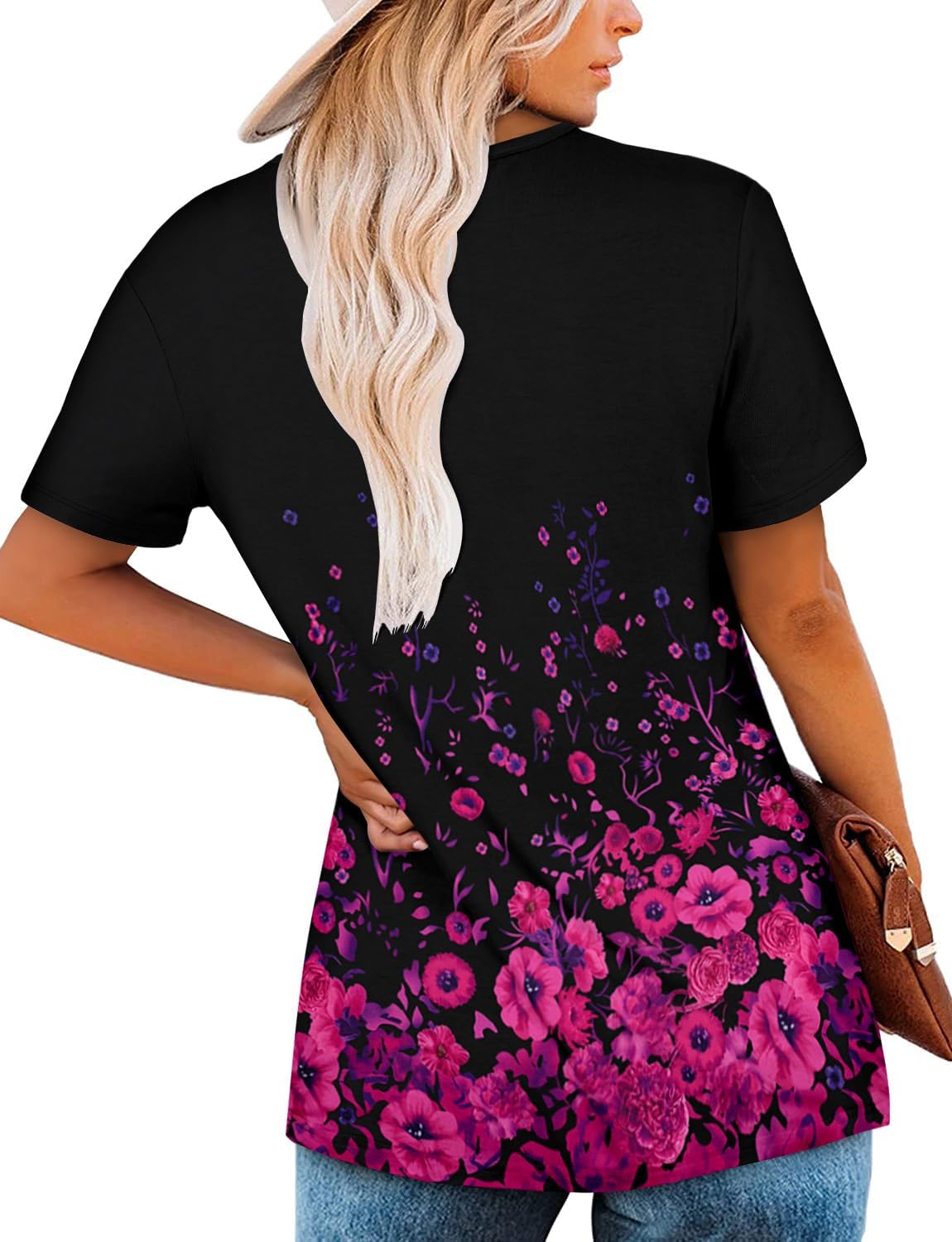 ZOLUCKY Womens Plus Size Short Sleeve Boho Tops Trendy Shirts Loose Fit Blouse Summer Tunic Top for Women S-3XL
