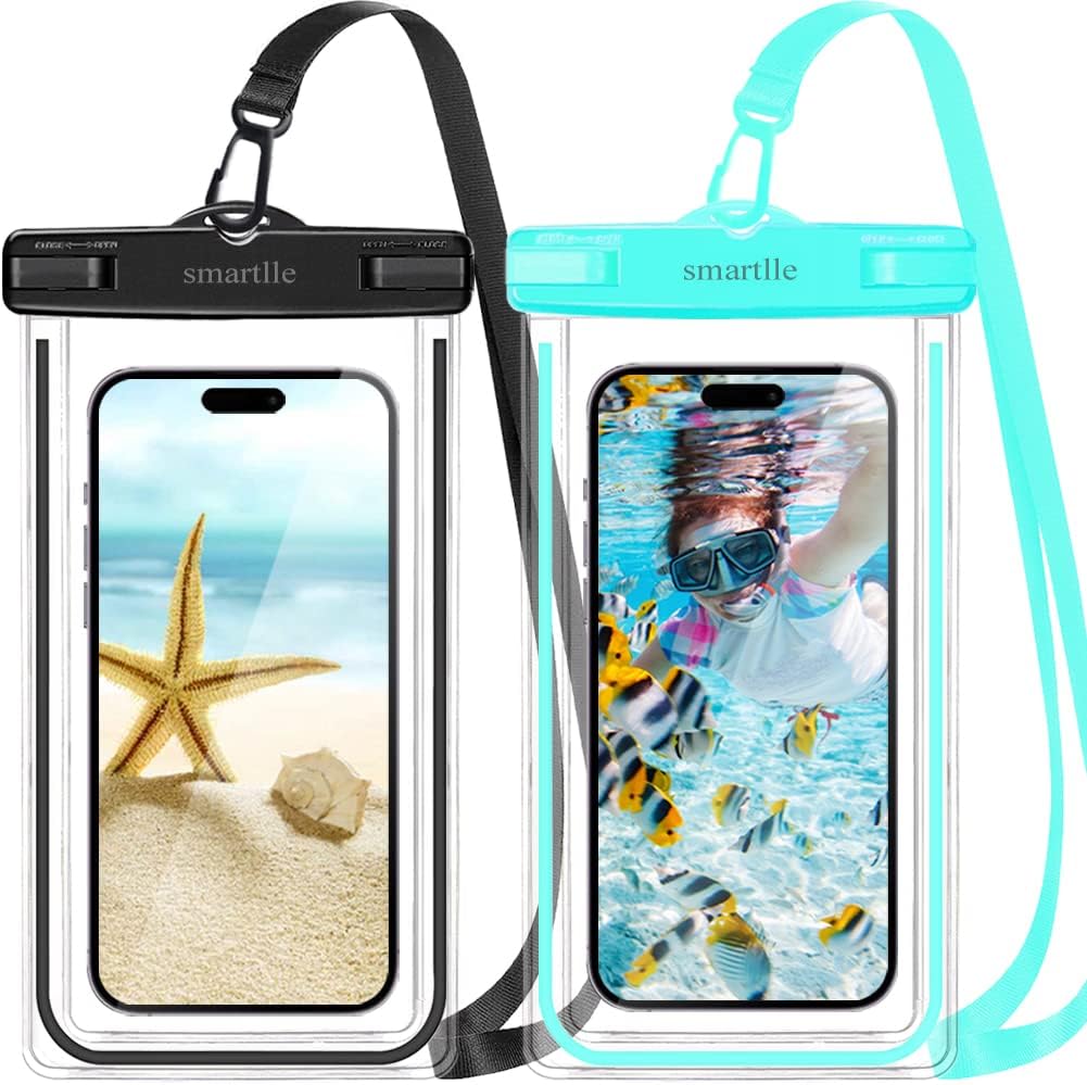 [Complete Waterproof Protection]: Our waterproof phone pouches is IPX8 certified, providing you with 100 feet of underwater waterproof protection. With smartlle's triple layer lock-down technology, our pouch effectively keeps your phone 100% waterproof, dirt-proof, and dust-proof, making it perfect for various activities such as swimming, rafting, boating, skiing, snorkeling, kayaking, surfing, fishing, rowing, taking a shower, cruises, camping, waterpark activities, or any other beach play;