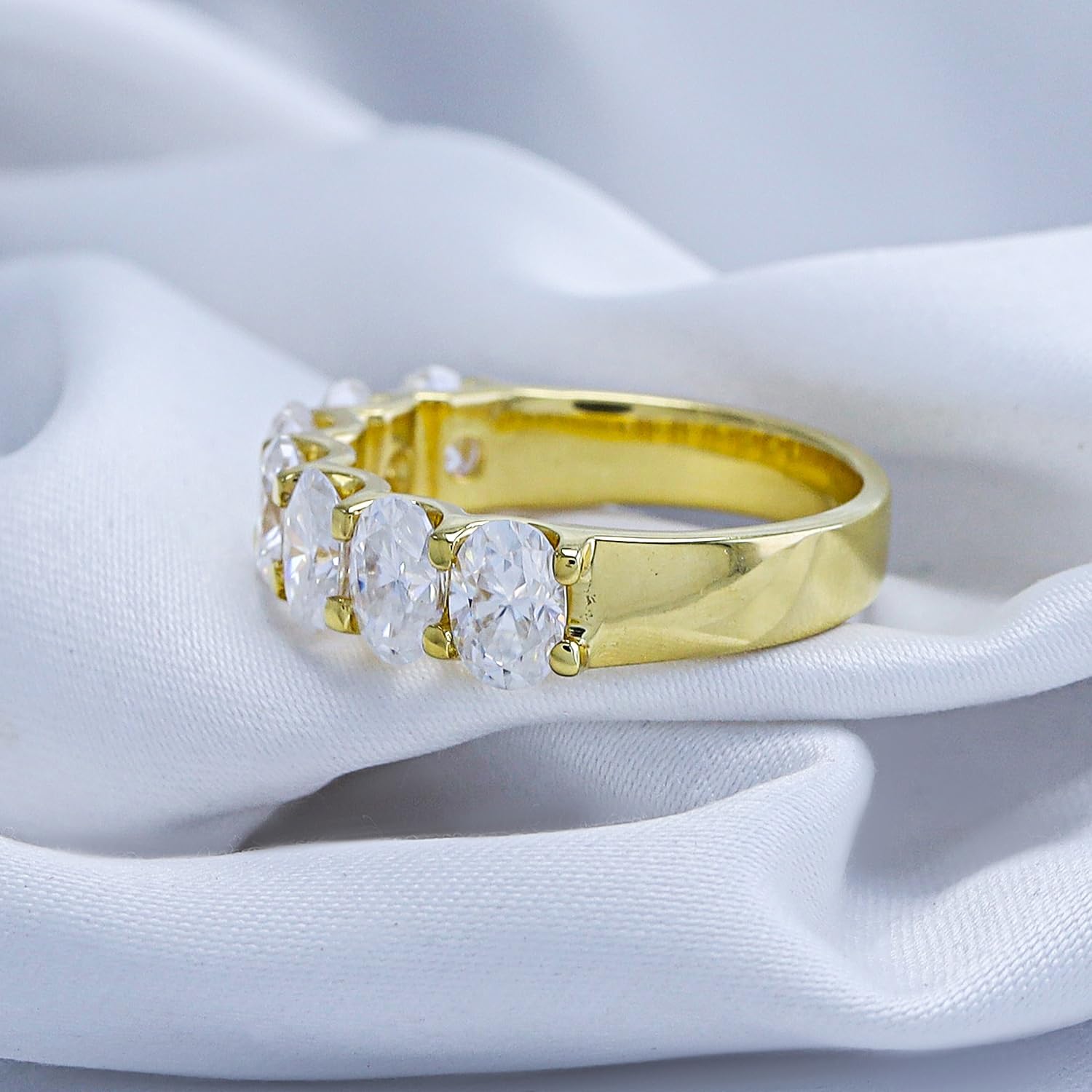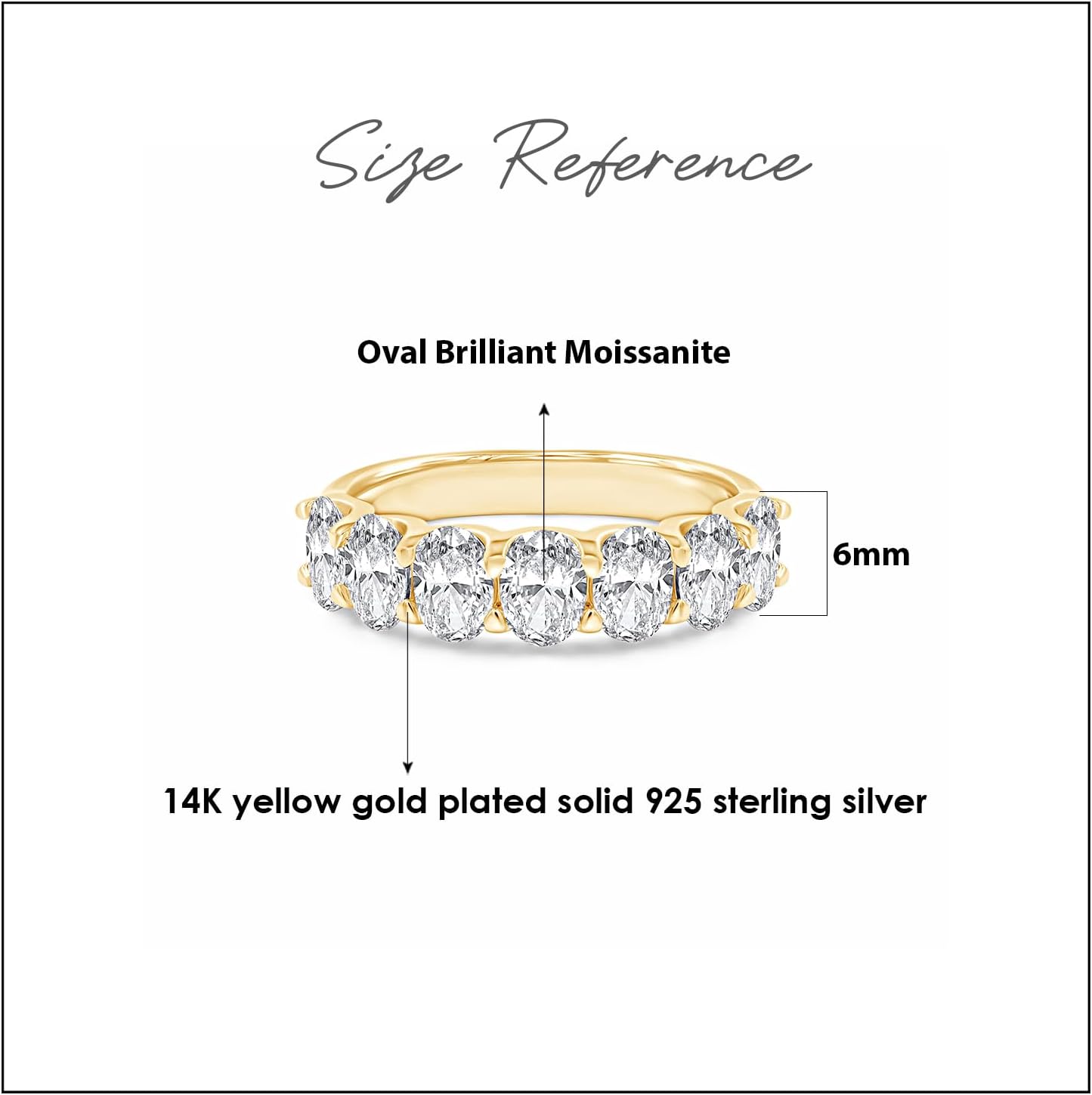 3 Carat 6X4MM Oval Cut Lab Created Moissanite Seven Stone Engagement Ring For Women In 14K Gold Plated Sterling Silver Half Eternity Stackable Band Ring (VVS1/3.00 Cttw)