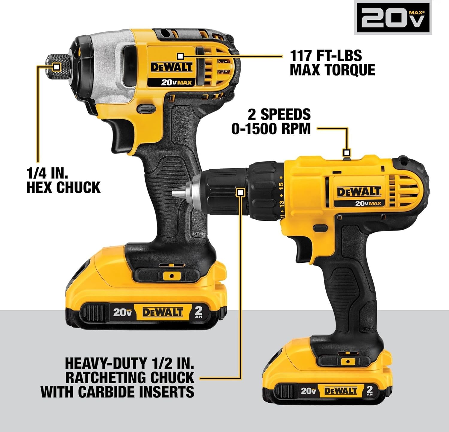 This combo kit is ideal for most cutting, drilling, and fastening applictations with a wide range of DEWALT power tools. This kit includes 10 powerful DEWALT 20V MAX* tools, one charger, two 20V MAX* 2Ah batteries and two large contractor bags. All tools included are compatible with all DEWALT 20V MAX* batteries and chargers.
