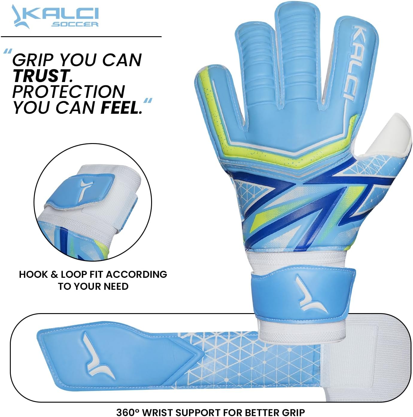 Kalci Soccer Goalie Gloves with Latex Foam Padding for Kids/Adult Finger Protection Breathable Goalkeeper Gloves Hook & Loop Strap for Ultimate Grip GK Gloves