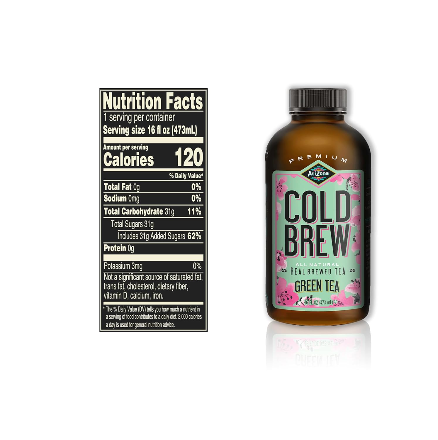 AriZona Cold Brew Green Tea - Premium Cold Brew Iced Tea (Pack of 12)