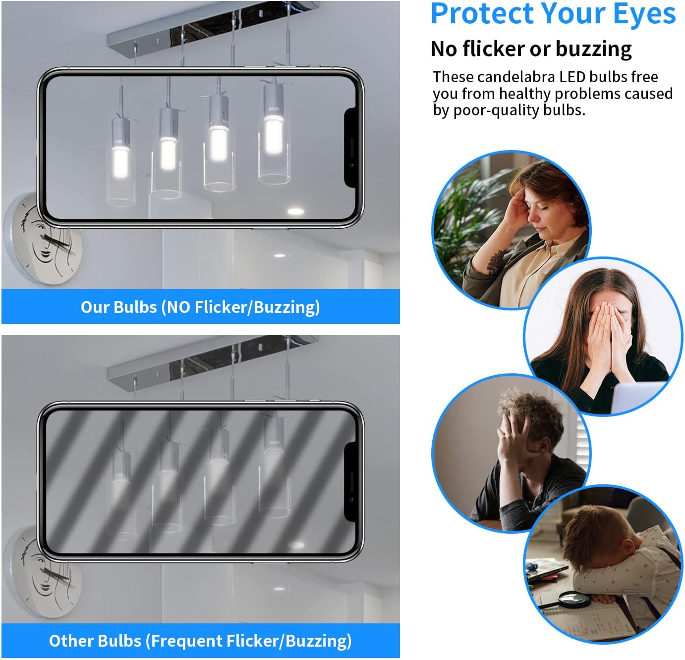 Wide Application-Led light bulbs widely use in E26 standard light bulbs,candelabra light bulbs,porch light bulb, floor lamp, ceiling light bulb, pendant fixtures or ceiling fixtures,garage door light bulbs, outdoor flood light bulbs, ceiling fan light bulbs, corridor, balcony, office, etc.