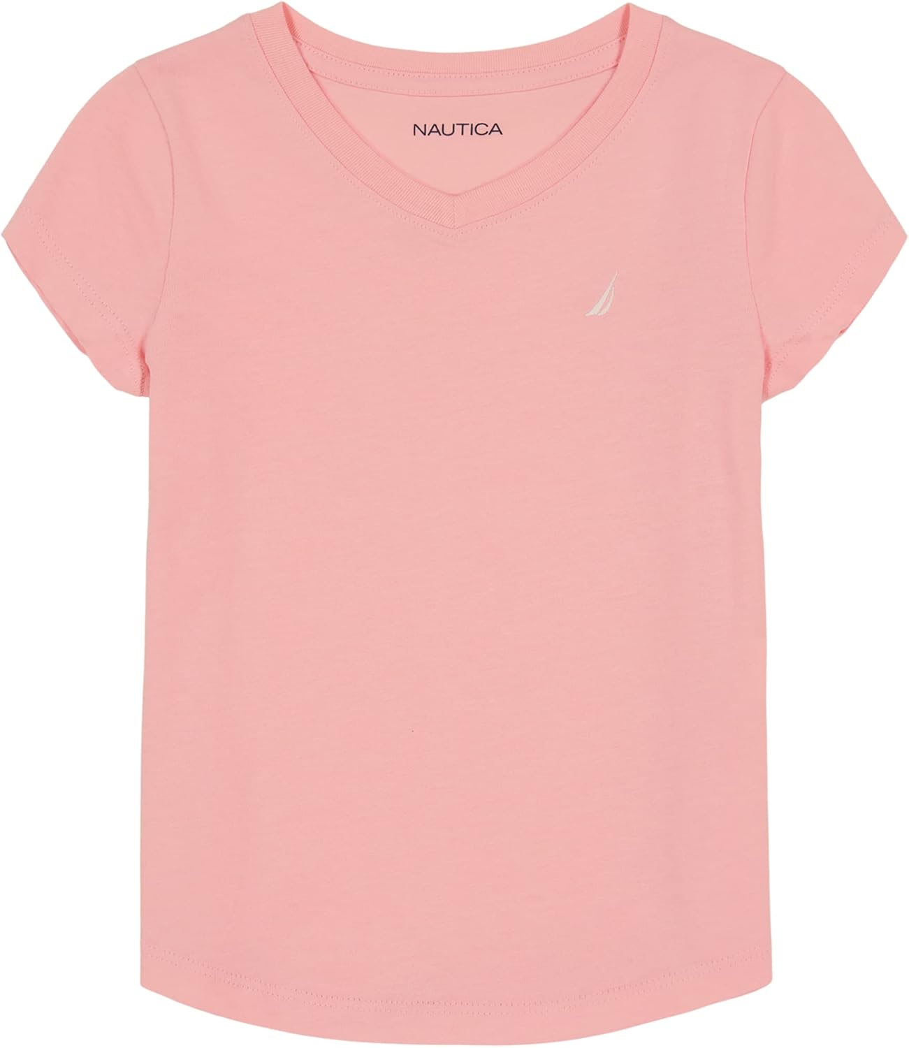 Nautica Girls' Short Sleeve V-Neck T-Shirt, Solid Cotton Blend Tee with Tagless Interior