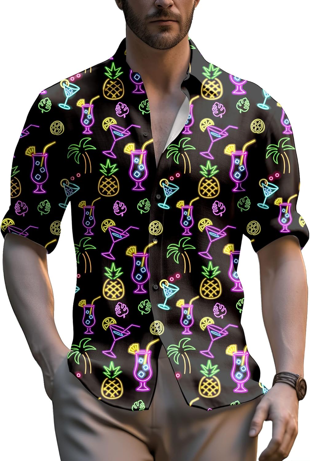 Neon Shirts for Men Button Up Shirts,Mens Neon Shirt Hawaiian Shirt for Men,Mens Beach Shirts Neon Clothes