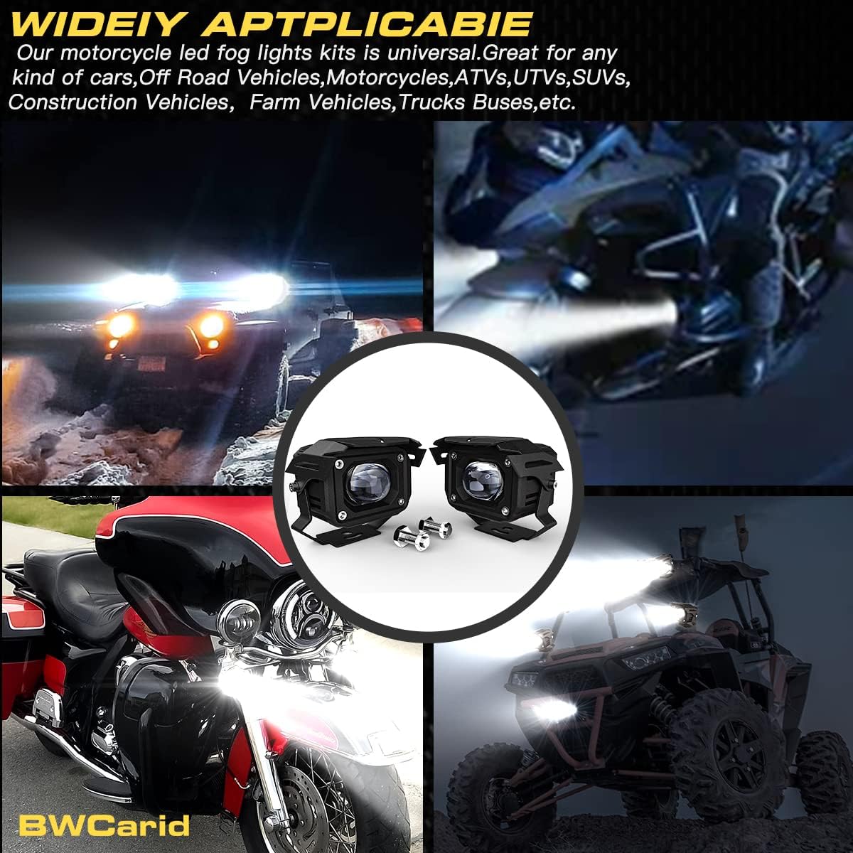 【90W 8000LM Super Bright】BWCarid motorcycle led fog lights carried 6pcs 18W super bright led chips,90W 8000lm lights pod illumination incredible brightness,12V-32V DC wide voltage design,increased by 85% brigther than other simillar motorcycle auxiliary lights,high luminous flux,long range,300% brighter than halogen,6500K daytime white light to added more clear vision for your driving journey,high brightness but energy saving.