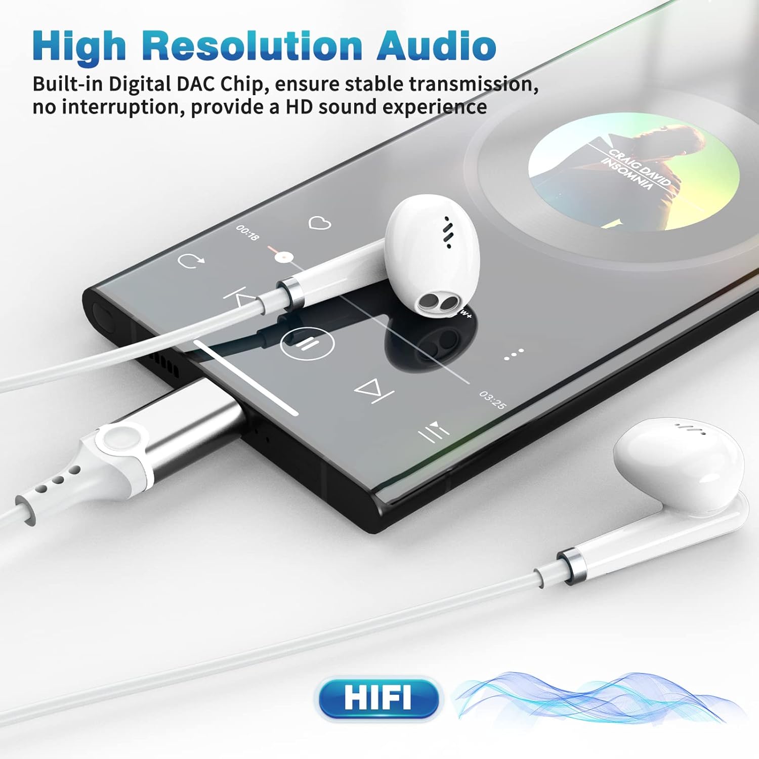 Comfortable and Stylish: Ergonomic semi in-ear design that don't enter inner ear canal which don't block all outside noise and provide wider sound stage than in-ear earbuds, keep aware of your surroundings, provide secure and comfortable fit. USB C headphones classic white add matte silver color give the earphones more stylish feel and perfectly match with all kinds of your device
