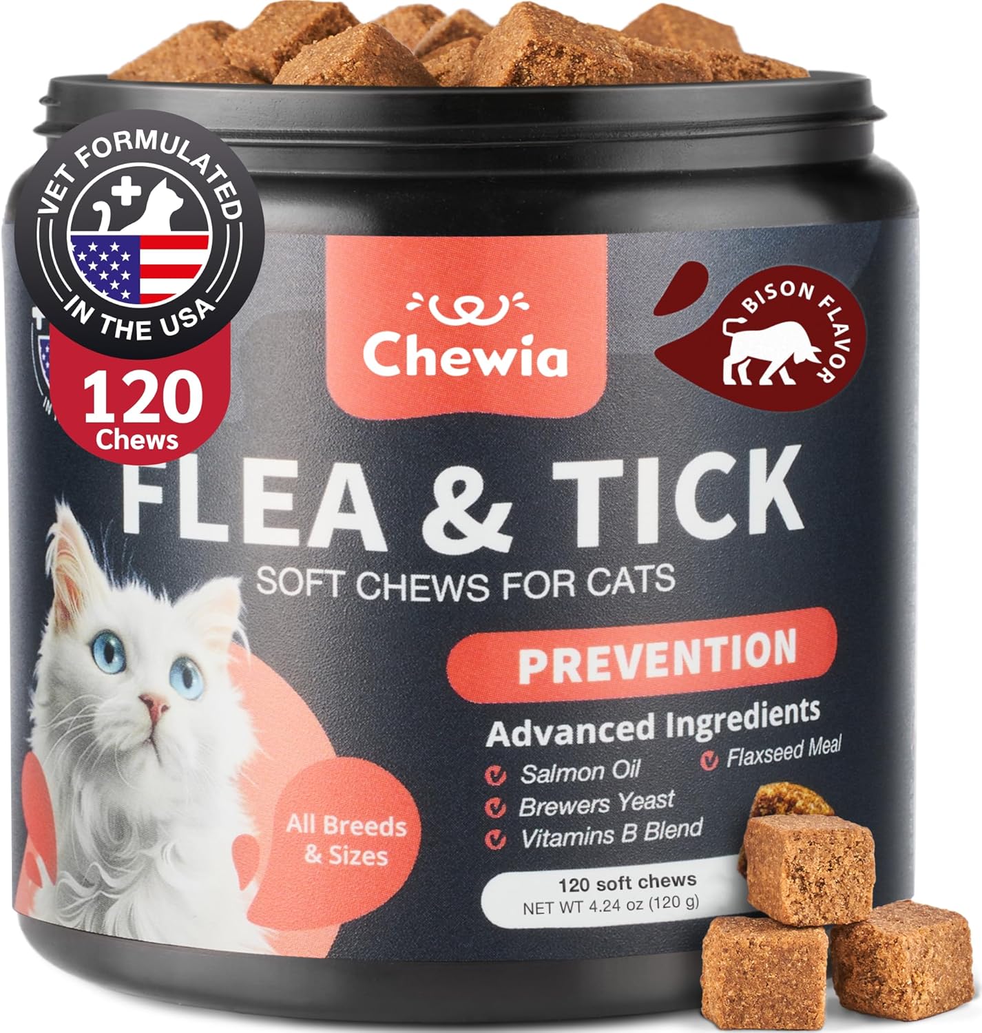 CONVENIENT FORMAT: Our flea chews for cats offer a quality alternative to collars, drops, sprays, and shampoos. Simply administer a few chews to your cat every day for flea and tick prevention