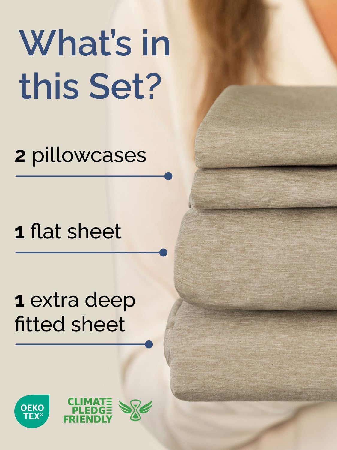 Extra Deep Pocket Queen Sheet Set - 4 Piece Breathable & Cooling Bed Sheets - Hotel Luxury Sheet Set - Soft, Wrinkle Free and Comfy - Fits Extra Deep Mattresses - Deep Pocket Heathered Beige Sheets