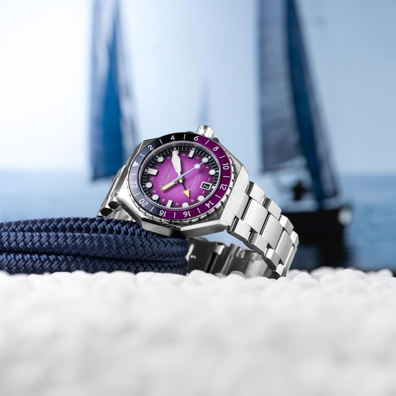 Spinnaker Dumas Men's Automatic GMT Dive Watch – Seiko NH34 Movement, 44mm Stainless Steel Case, Water Resistant 300m, Stainless Steel Bracelet, SP-5119