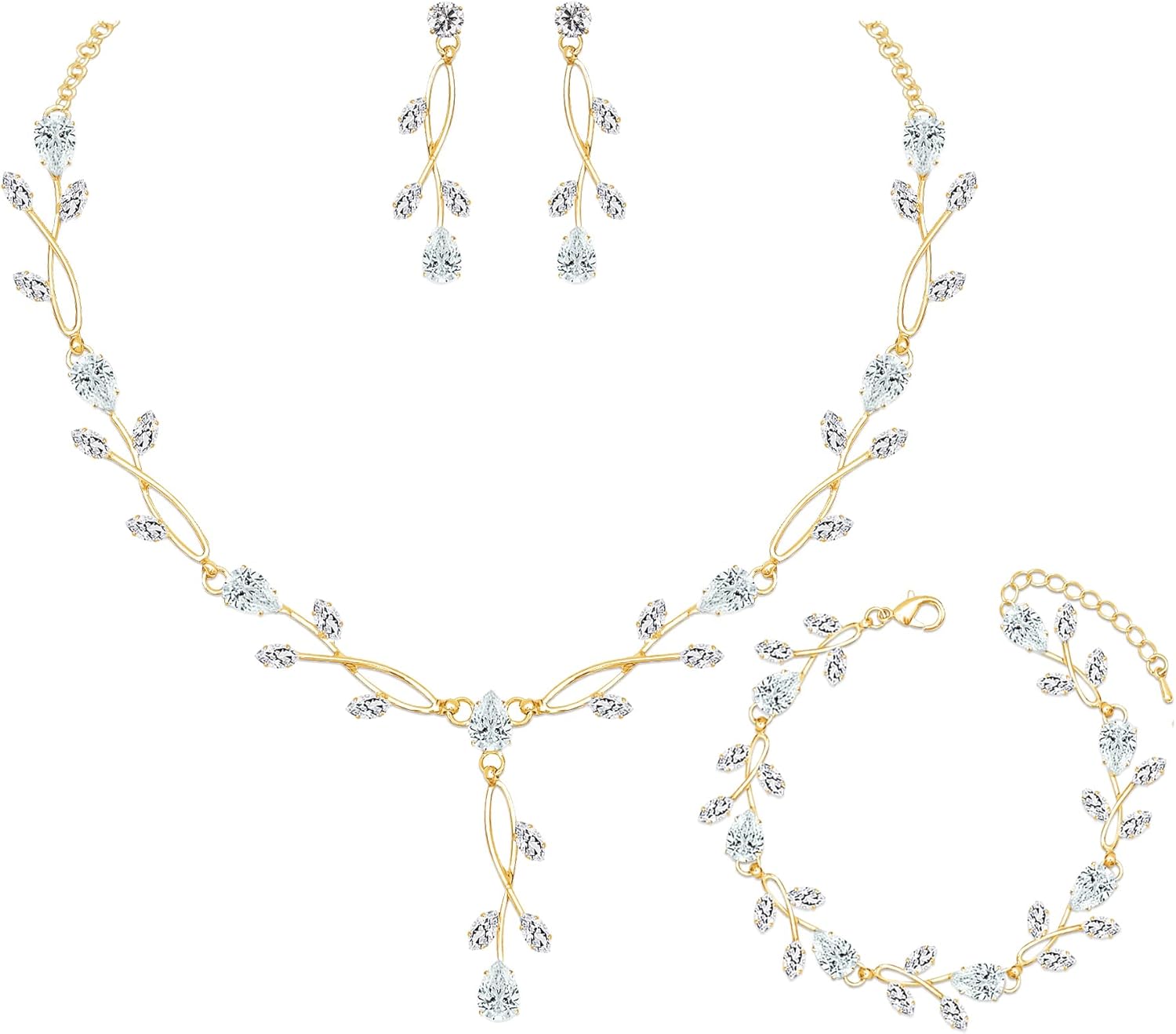 Elegant Bridal Jewelry Sets Clear Cubic Zirconia Wedding Necklace Earrings Bracelet Set for Birdes Bridesmaids CZ Prom Jewelry