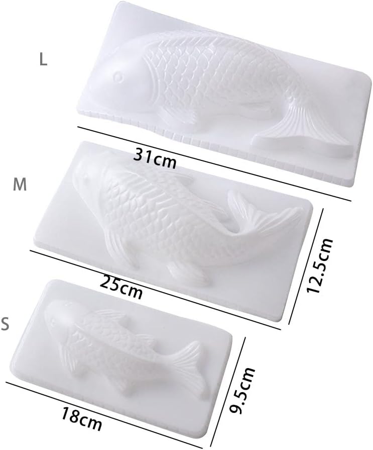 Size: approx 31 x 31cm/25 x 12.5cm/18 x 9.5cm. The 3D Koi fish mold comes in 3 sizes, making it perfect for a variety of uses and occasions.