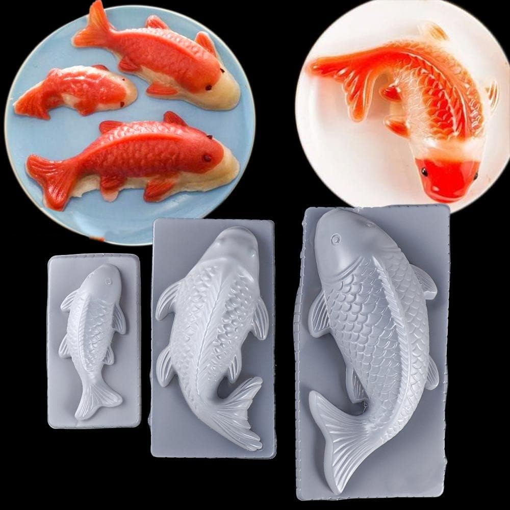 3 Pieces 3D Koi Fish Carp Mold, Transparent Sugarcraft Mold Handmade Goldfish Shaped Cake Pudding Mold Party Baking Tool