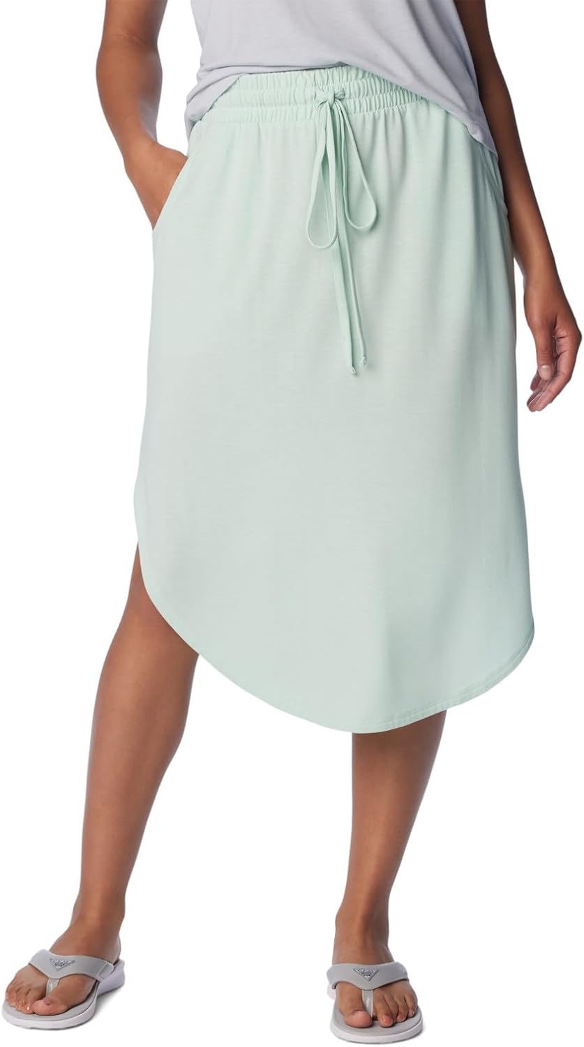 Advanced technology and a feminine silhouette make for a great experience. Whether you're out for hours of socializing or just sitting back catching the sunset, this skirt will not disappoint. The protective Omni-Shade technology is UV blocking, while the Omni-Wick weave works to pull moisture away from the skin. Convenient hand pockets allow for stashing key items on the go, while an adjustable drawcord waist keeps everything in place. Columbia offers this women’s skirt in multiple colors and sizes. Regular Fit. To ensure the size you choose is just right, please refer to our sizing chart. To find your waist measurement, measure around your natural waistline, and then measure widest point at the hips.