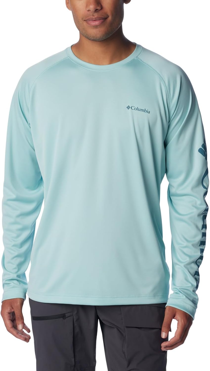Made with sweat-wicking, sun-shielding stretch fabric, this performance shirt keeps you going on warm days. From town to trail, it has you covered. Columbia offers this shirt in multiple colors and sizes. Extended sizing available. Regular fit.