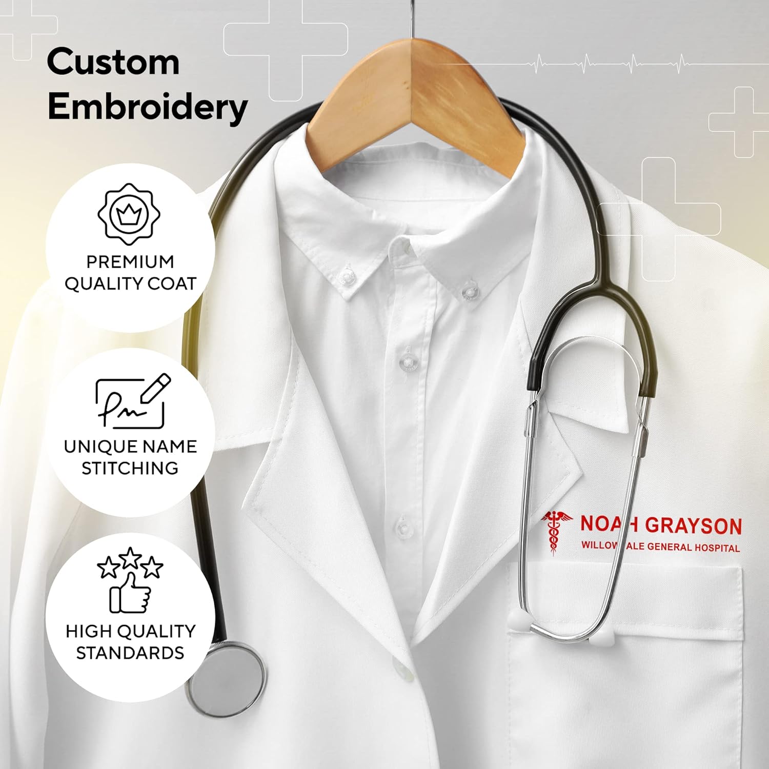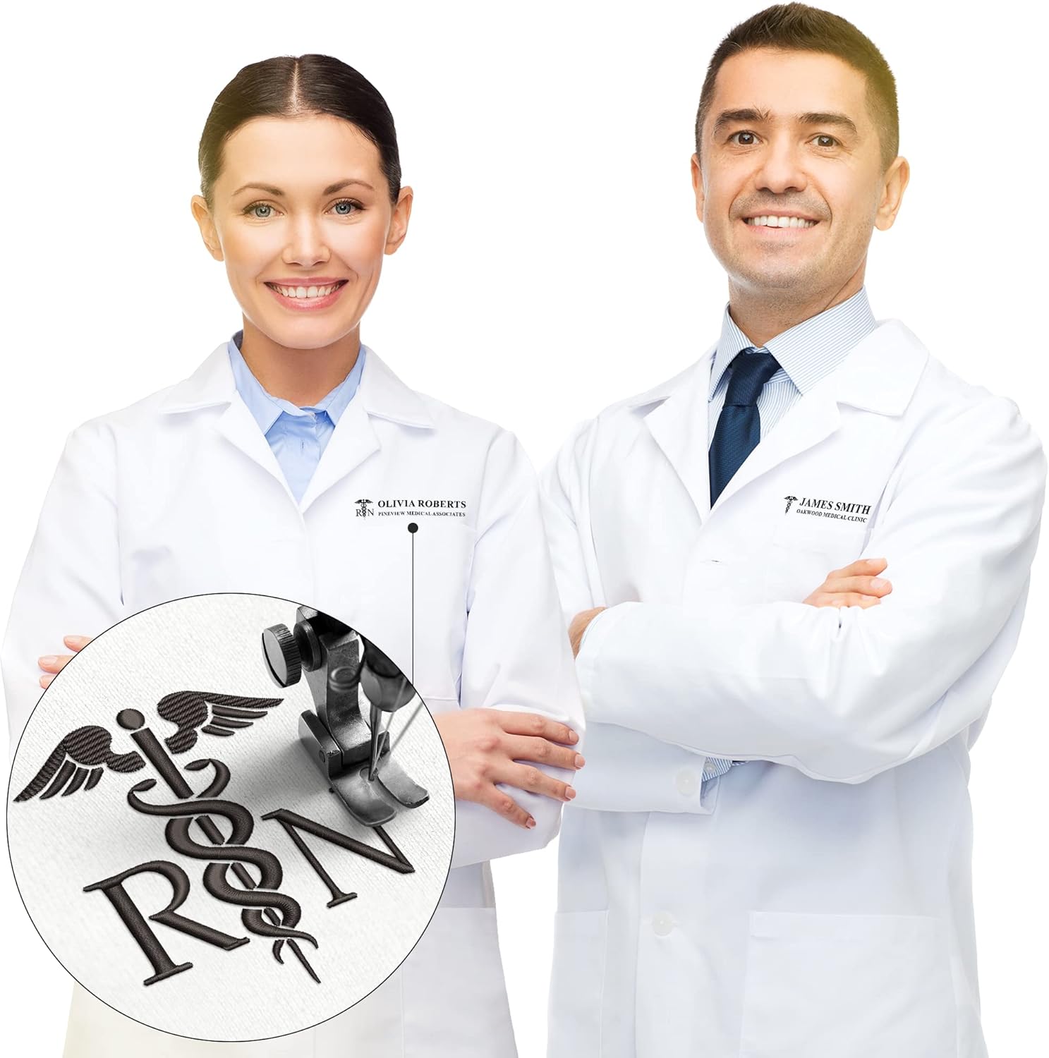 Bata de laboratorio bordada personalizada para hombre y mujer con el icono y el nombre de una especialidad médica, texto personalizado y 13 colores de hilo, ¡profesional y elegante!