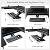 [ 360°Height Adjustable Gaming Desk With Keyboard Tray with mouse pad ]Keyboard Tray can be 360°horizontally rotated and 15°vertically tilted for you to get a comfortable position, greatly relieving soreness of your hands; Easy storage by pulling it back under the table if not needed; Soft Full-desk Mouse Pad with non-slip rubber base creates top-notch user experie