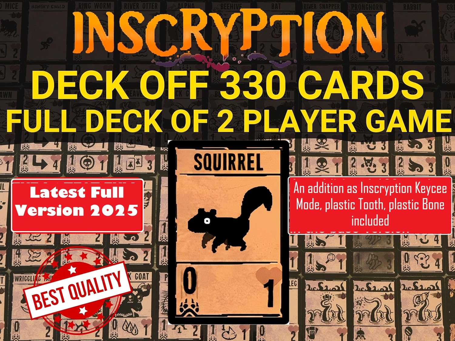 💥 Las cartas Inscryption tienen un tamaño estándar de 2.25 x 3.5 pulgadas. Cada carta en la versión de 324 cartas está diseñada de manera única. El producto utiliza imágenes nítidas de 4K impresas en papel "GSM 350" con la mejor tecnología de impresión, resultando en cartas de absoluta calidad con alta durabilidad y suavidad, proporcionando una sensación lujosa y elegante al tacto. Tenemos muchos otros mazos de cartas divertidos para que elijas aquí: https://www.amazon.com/s?me=A21LBCYHU5ILN3&marketplaceID=ATVPDKIKX0DER