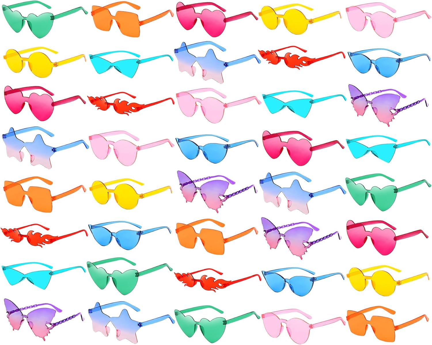 40 Mixed Style Rimless Sunglasses Retro Colored Party Glasses Funny Rimless Pool Bachelor Costume Accessories