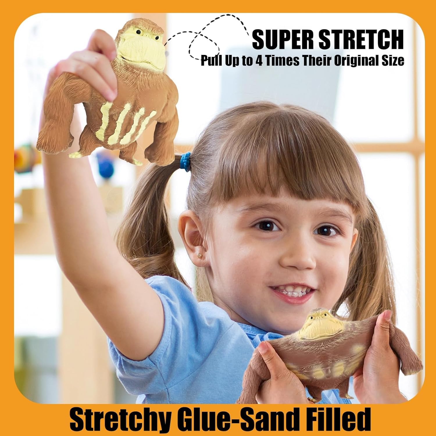Perfect for Stress Relief: This Fidgets Pack is ideal for anyone seeking relief from the stresses of everyday life. Whether you need to unwind after a long day or simply want to relax, the super elastic latex gorilla toy and sand-filled decompression game are perfect for your needs.