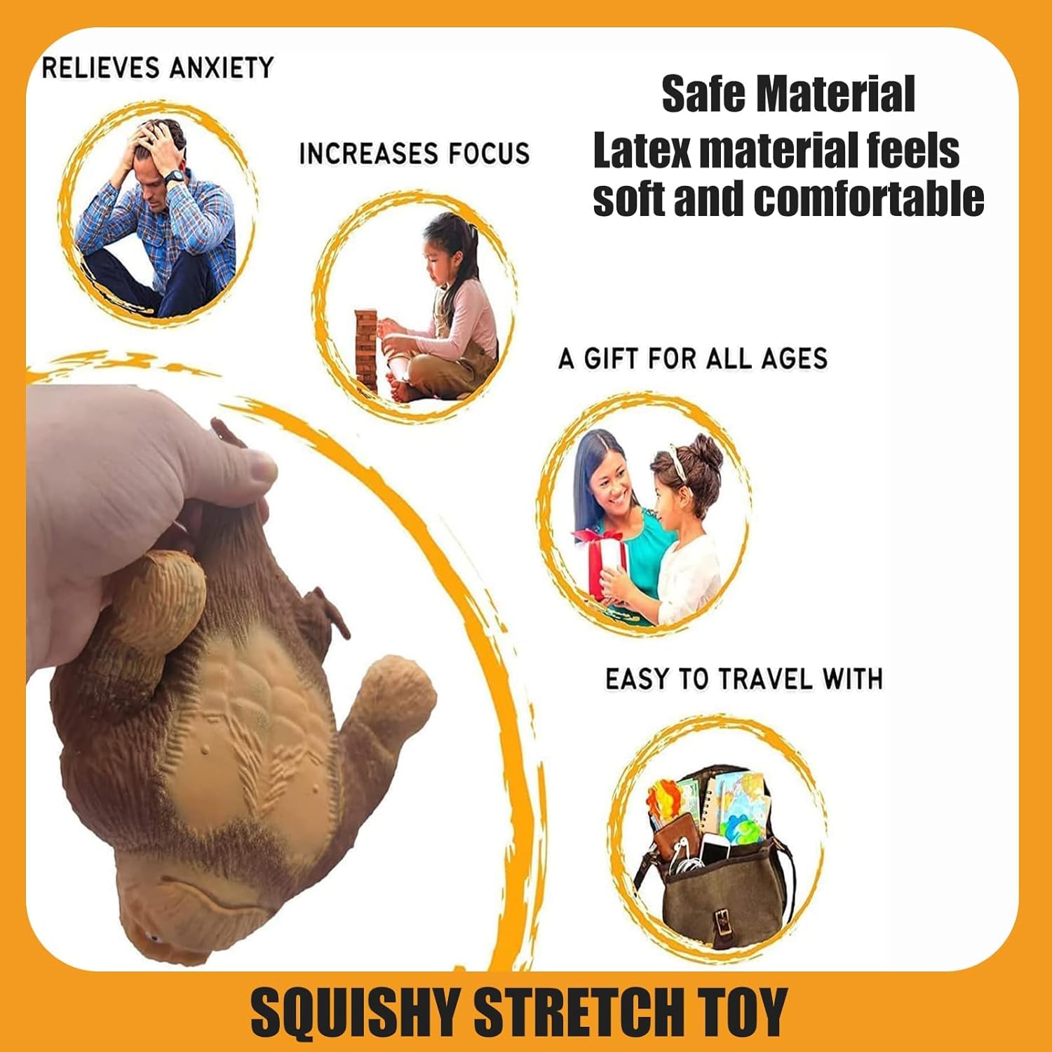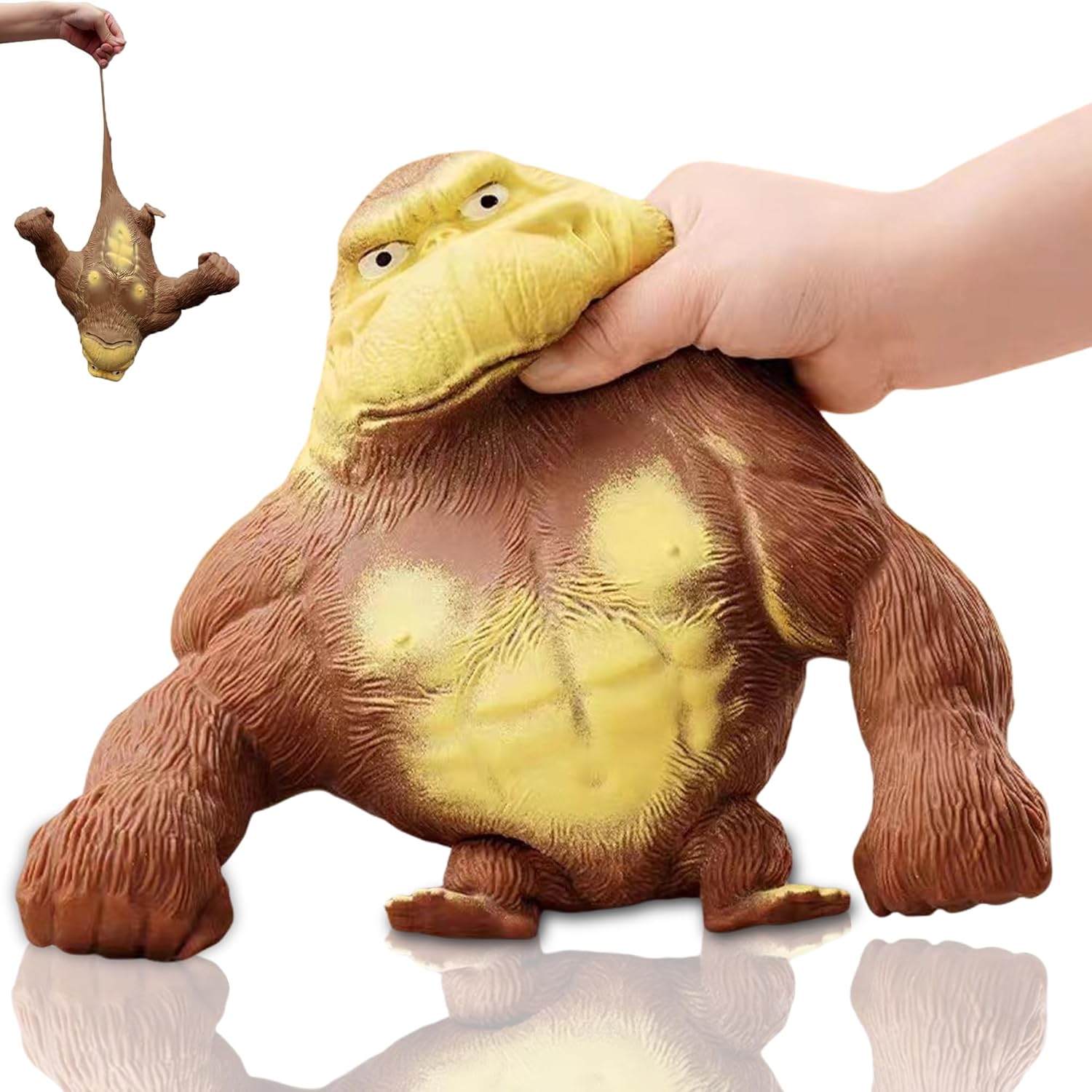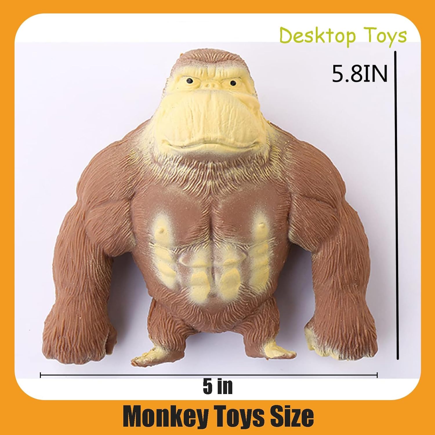 Cute and Soft: The stress relief pack includes a cute and soft latex gorilla doll that is made of high-quality, non-toxic material, and can be stretched up to four times its original size. It's lightweight and easy to clean, making it perfect for use in various settings.