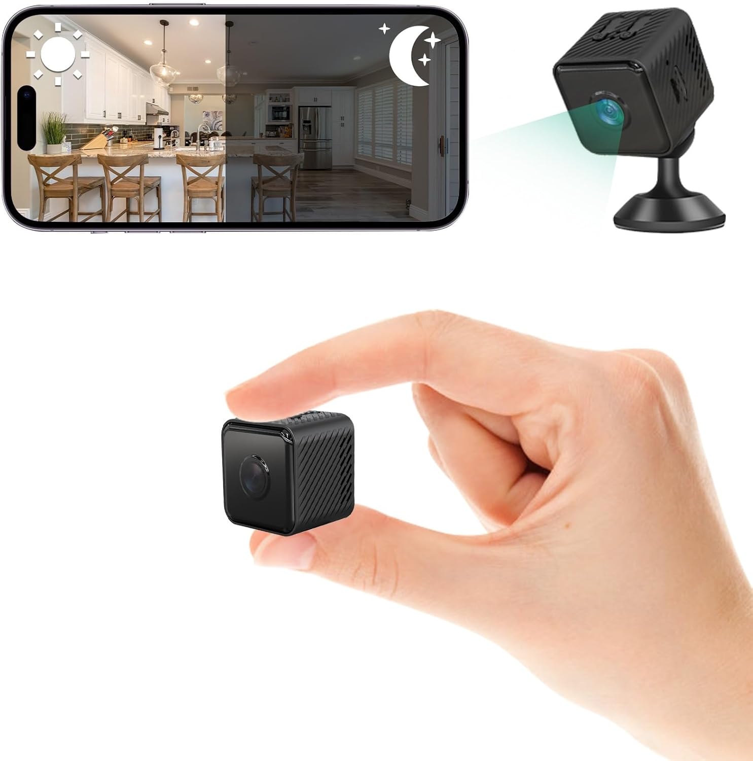 【Small size, big use】This mini camera is the world's smallest Wi-Fi security camera, easy to hide and not easy to be found and damaged by others. Realizing a truly wireless design, it does not require a network cable or power cord, and very easy to set up and install. With the help of its powerful magnet, you can fix this wireless spy camera on any surface. You can also watch live video through the app on your phone. UCHXXYM LIDYBALABUKIHZ