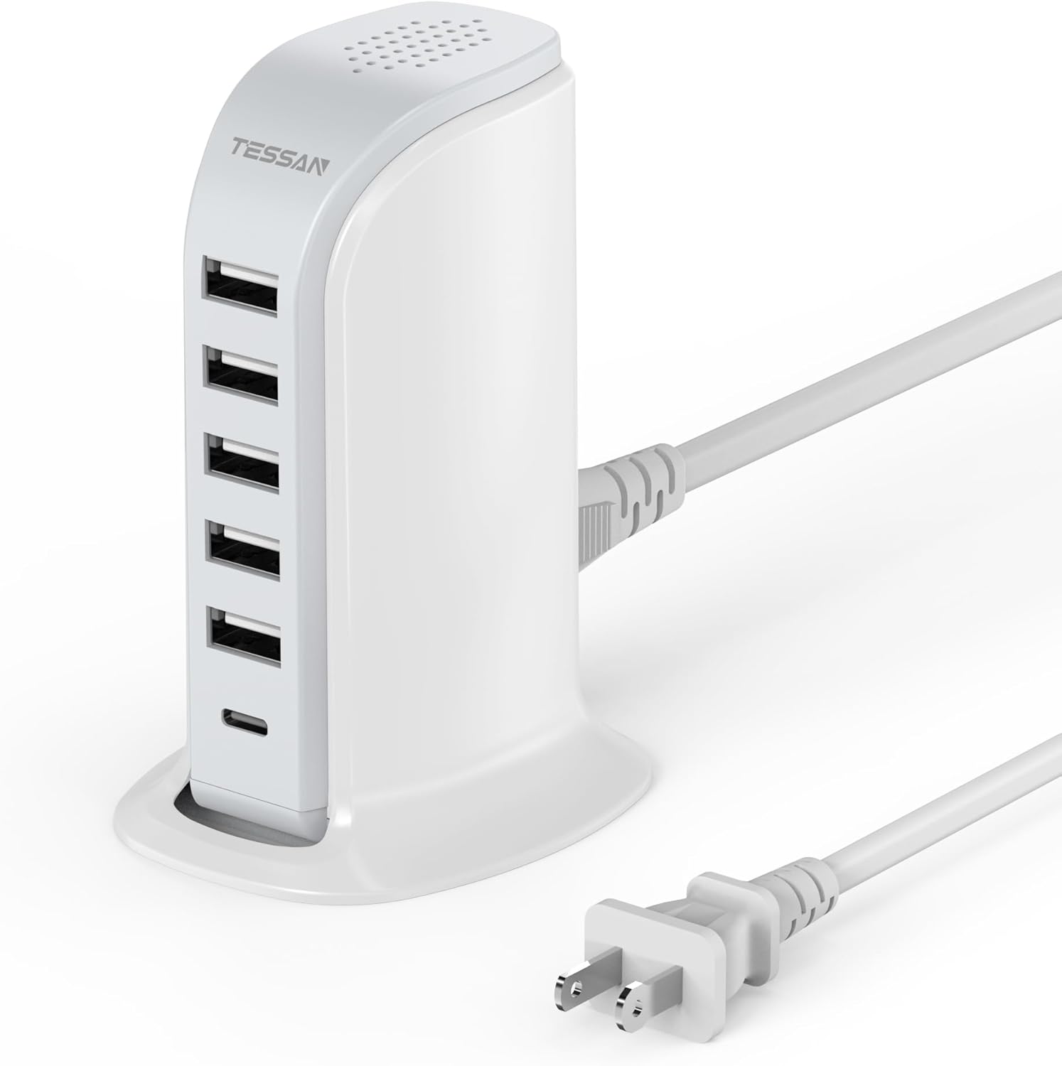 Estación de carga USB para varios dispositivos de 40 W, torre de carga de escritorio TESSAN con 6 puertos USB, hub de carga rápida tipo C, bloque de carga para teléfono, tableta, auriculares, accesorios de viaje