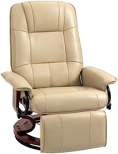 HOMCOM Faux Leather Manual Recliner, Adjustable Swivel Lounge Chair with Footrest, Armrest and Wrapped Wood Base for Living Room, Cream White