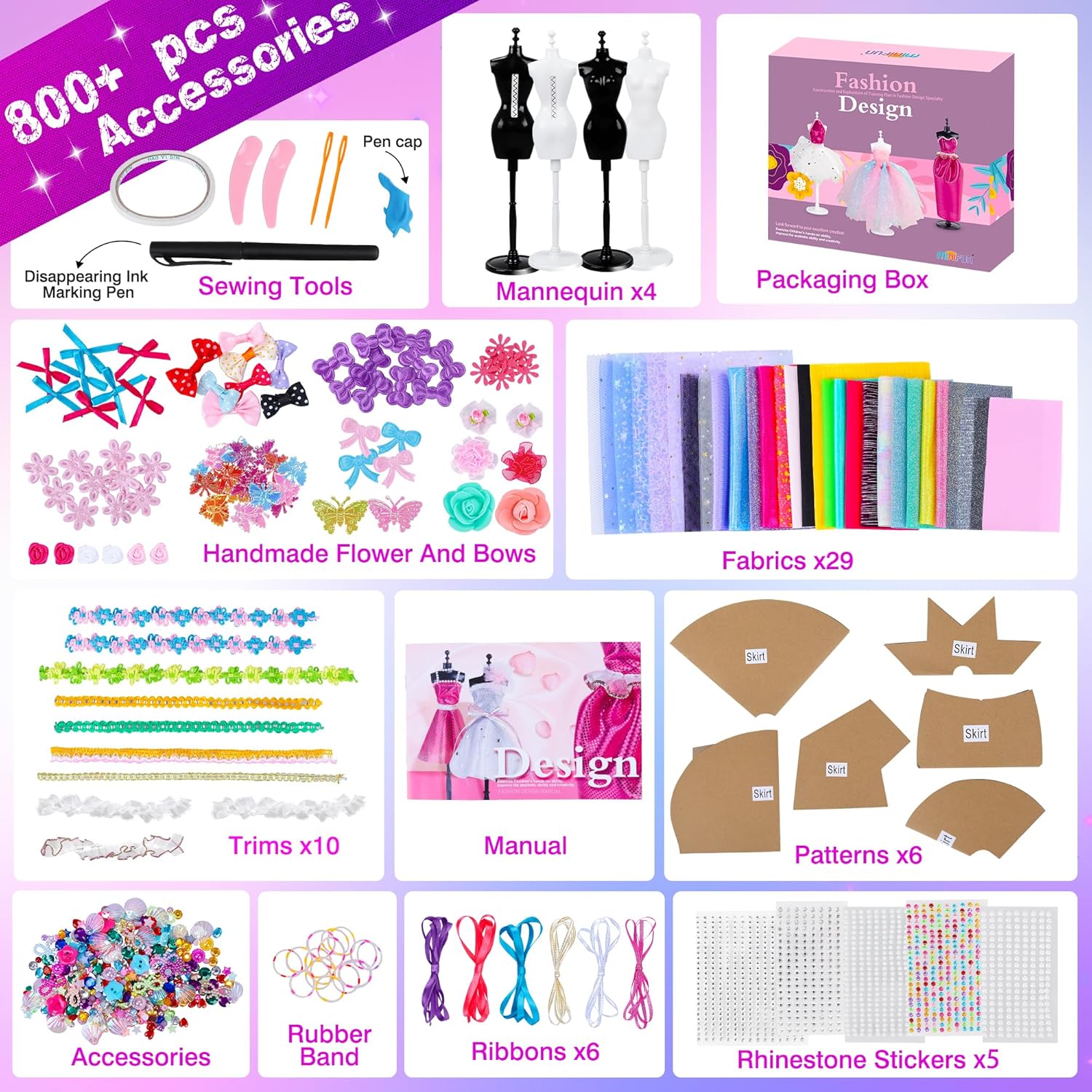 Gran Idea de Regalo: Este kit es adecuado para niñas de 6 a 12+ años e incluso para adultos, convirtiéndolo en una opción de regalo perfecta para cumpleaños, Halloween, Navidad, Día del Niño, Acción de Gracias y otras festividades. Conjunto de diseño de moda MINIFUN, mejores juguetes para niñas.