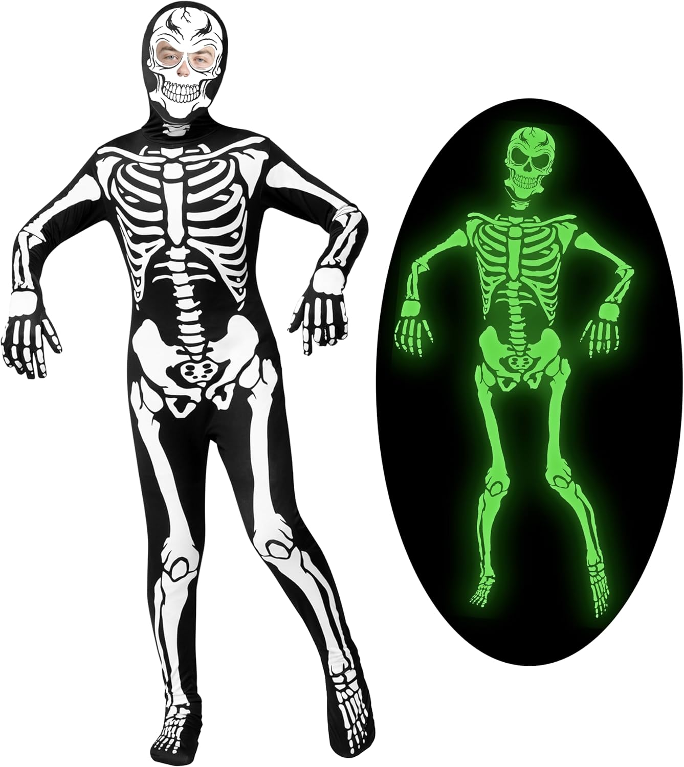 Spooktacular Creations Glow in the Dark Skeleton Costume for Kids Boys, Halloween Costume for Kids, Skeleton Jumpsuit