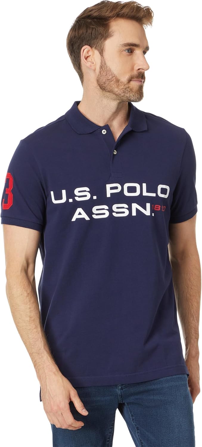 U.S. POLO ASSN. mens Short Sleeve Printed Chest Pique Polo Shirt