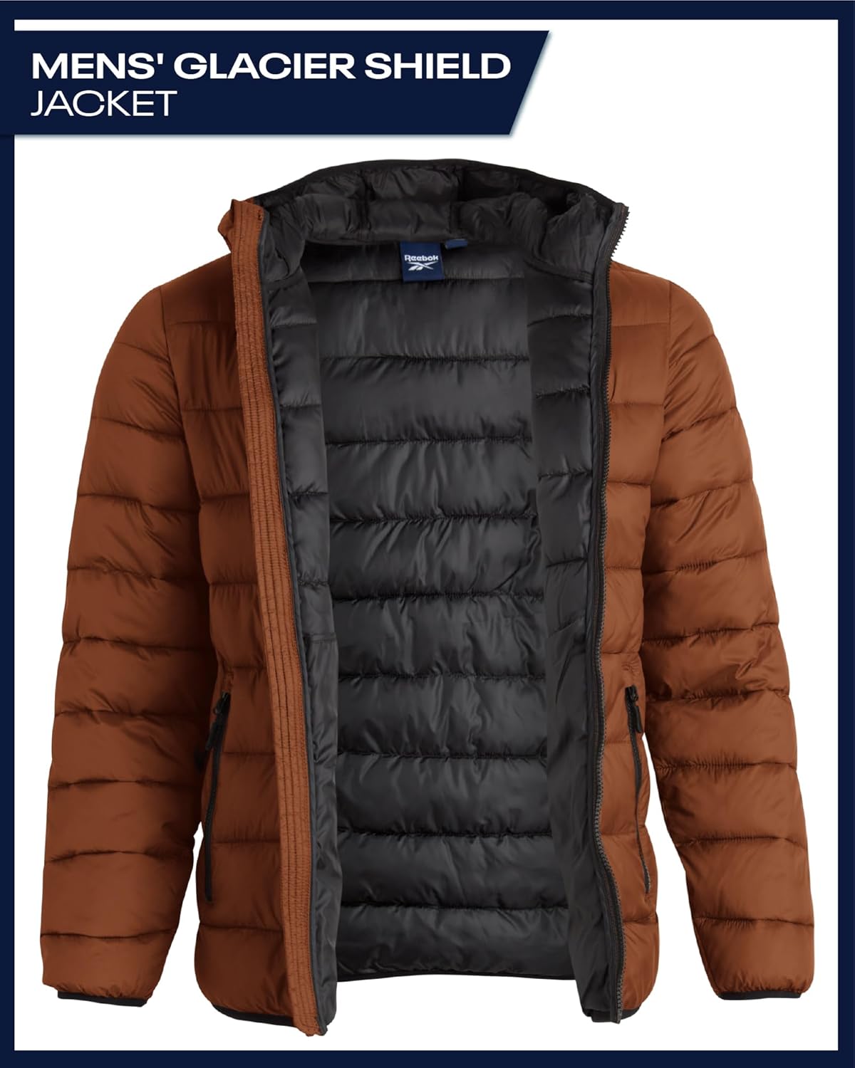Reebok Mens Puffer Jacket - Lightweight Quilted Glacier Shield Plus Size Puffer Jackets for Men - Insulated Mens Winter Coats