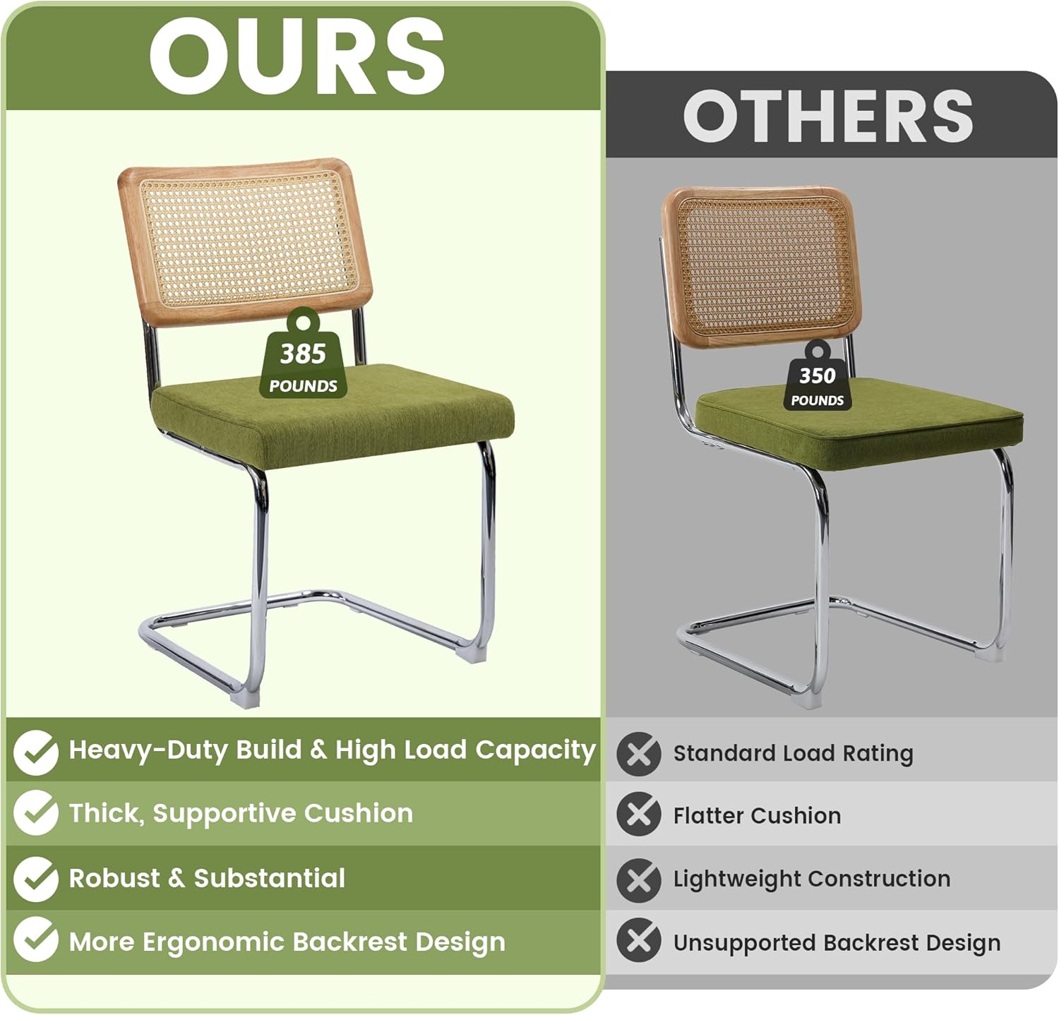 Dining Chairs Set of 2, Modern Rattan Kitchen Chairs, Mid Century Modern Design, Polished Chrome Frame, Upholstered Seat, Green