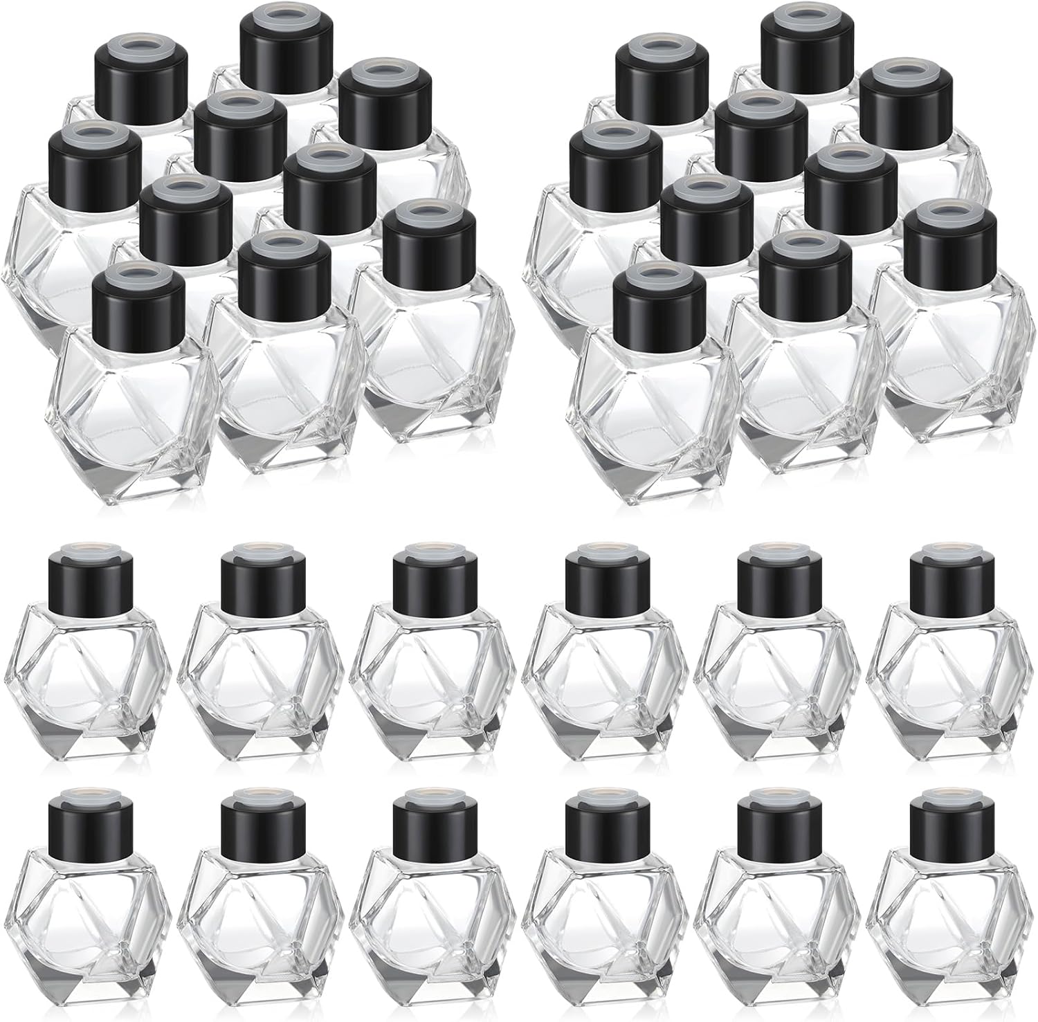 Umigy 50 Set Botellas Difusoras de Vidrio Reed Diffuser Botellas Vacías Jarras Difusoras de Fragancia de Vidrio Claro con Tapones Negros 50ml 1.7 Oz Botella Difusora de Aceite Esencial para Fragancia DIY (Hosohedron)