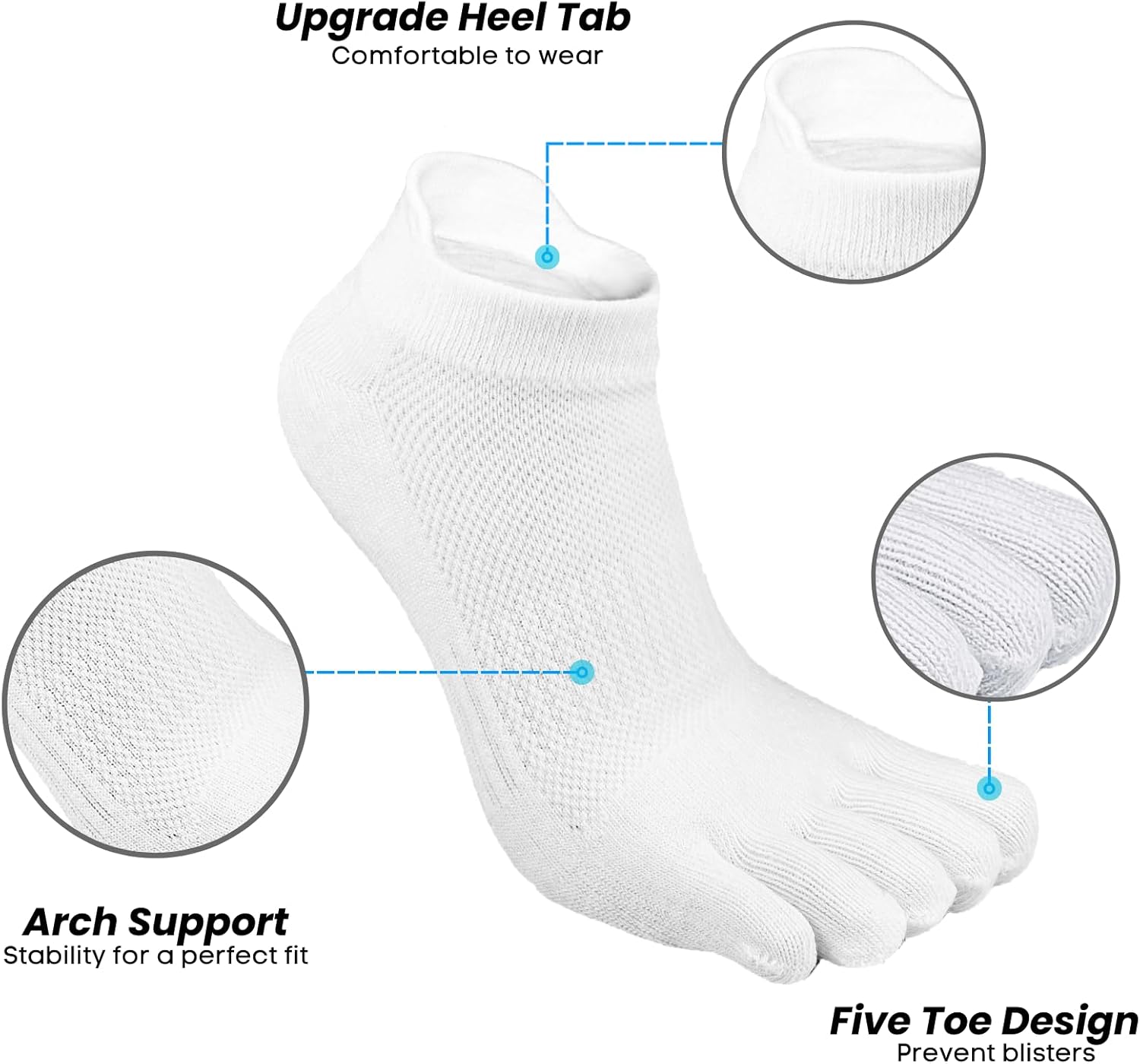 Toe Socks for Men and Women Athletic Running Five Finger Five Toe Socks with Premium Cotton LightWeight Size 6-14