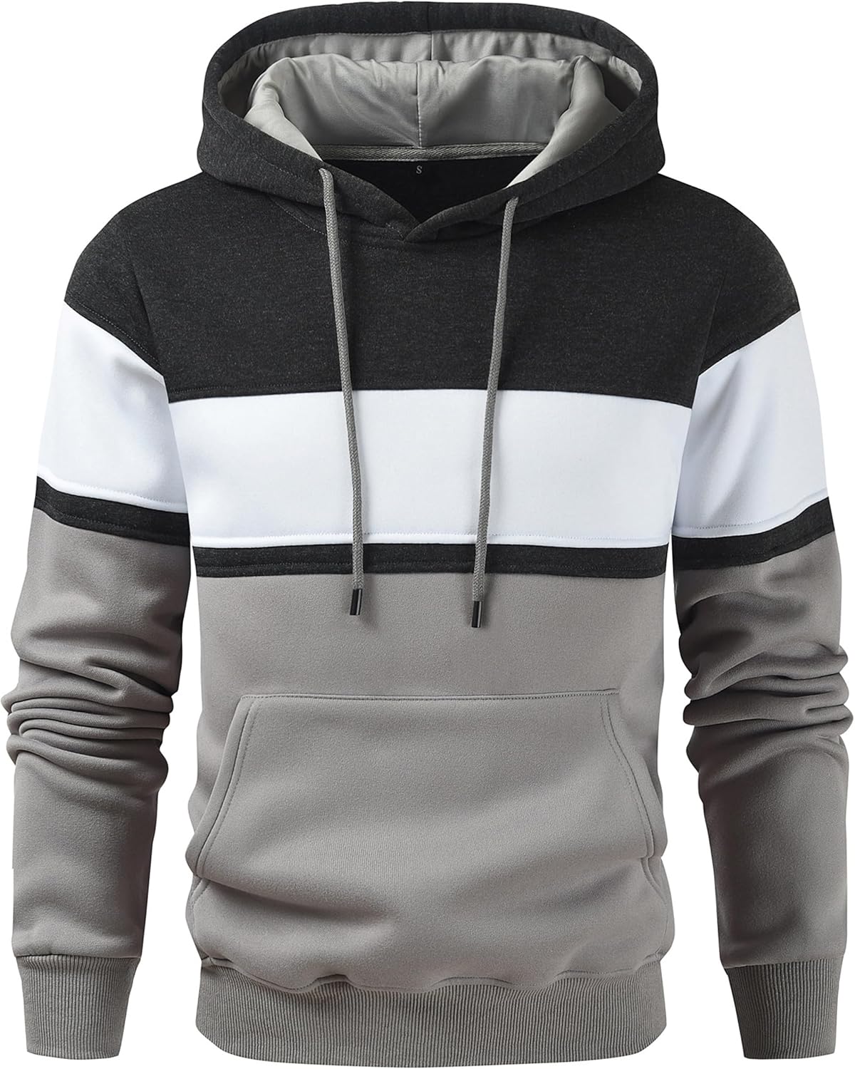 Men's Novelty Color Block Pullover Hoodie Casual Fleece Long Sleeve Hooded Sweatshirt