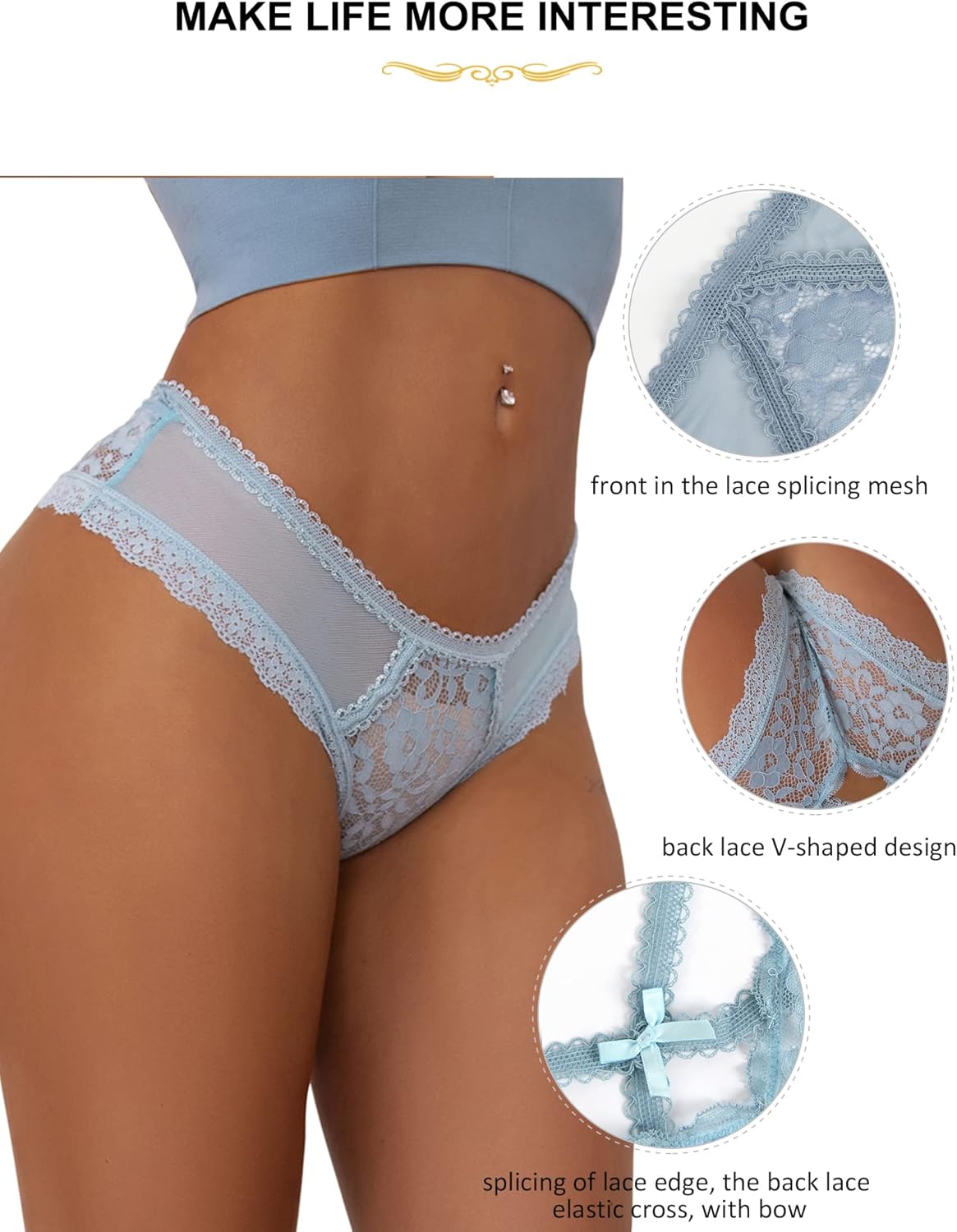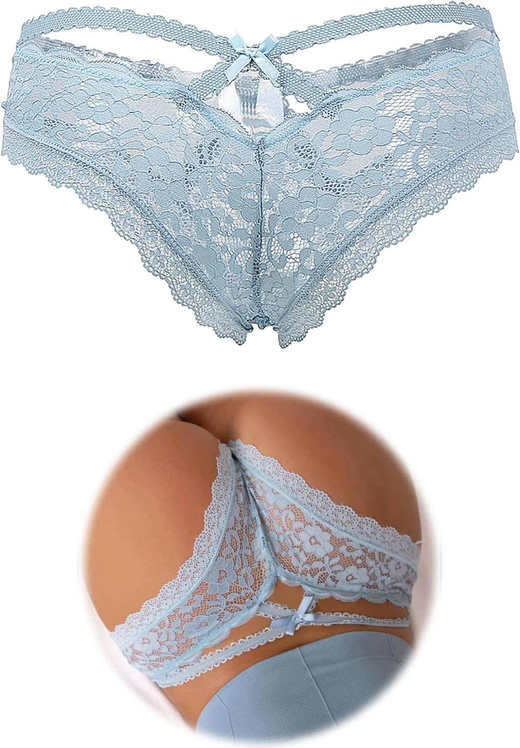 ohmydear Women's Plus Size Sexy Lace Thong Floral Underwear Criss Cross Bikini Panties Tangas Briefs XS-4XL