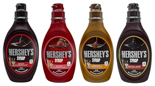 Hershey's Syrup 4 Pack | Chocolate (24 oz.), Strawberry (22 oz.), Caramel (22 oz.), Dark Chocolate (22 oz.) | Desserts Toppings Milkshakes