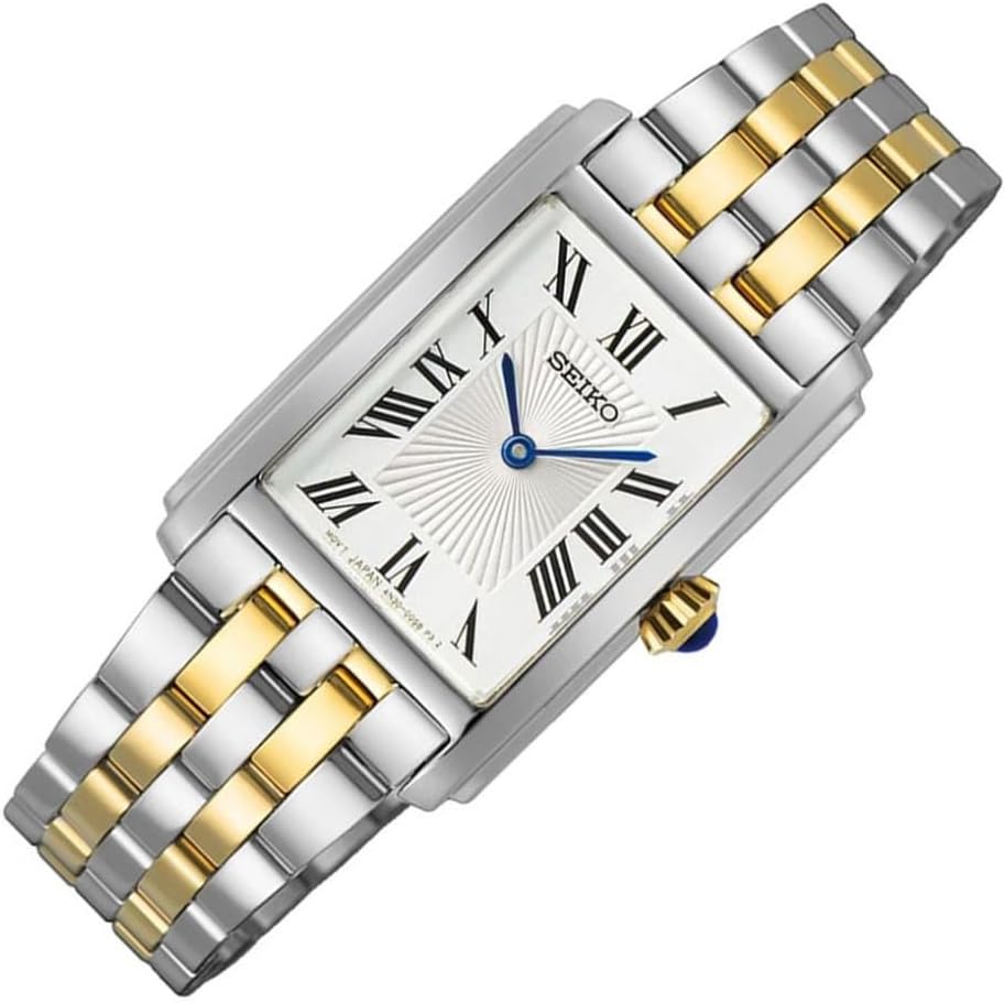 Reloj cuarzo SEIKO para mujer con banda de acero inoxidable de dos tonos y dial blanco. Diseño elegante y duradero para un estilo moderno y sofisticado.