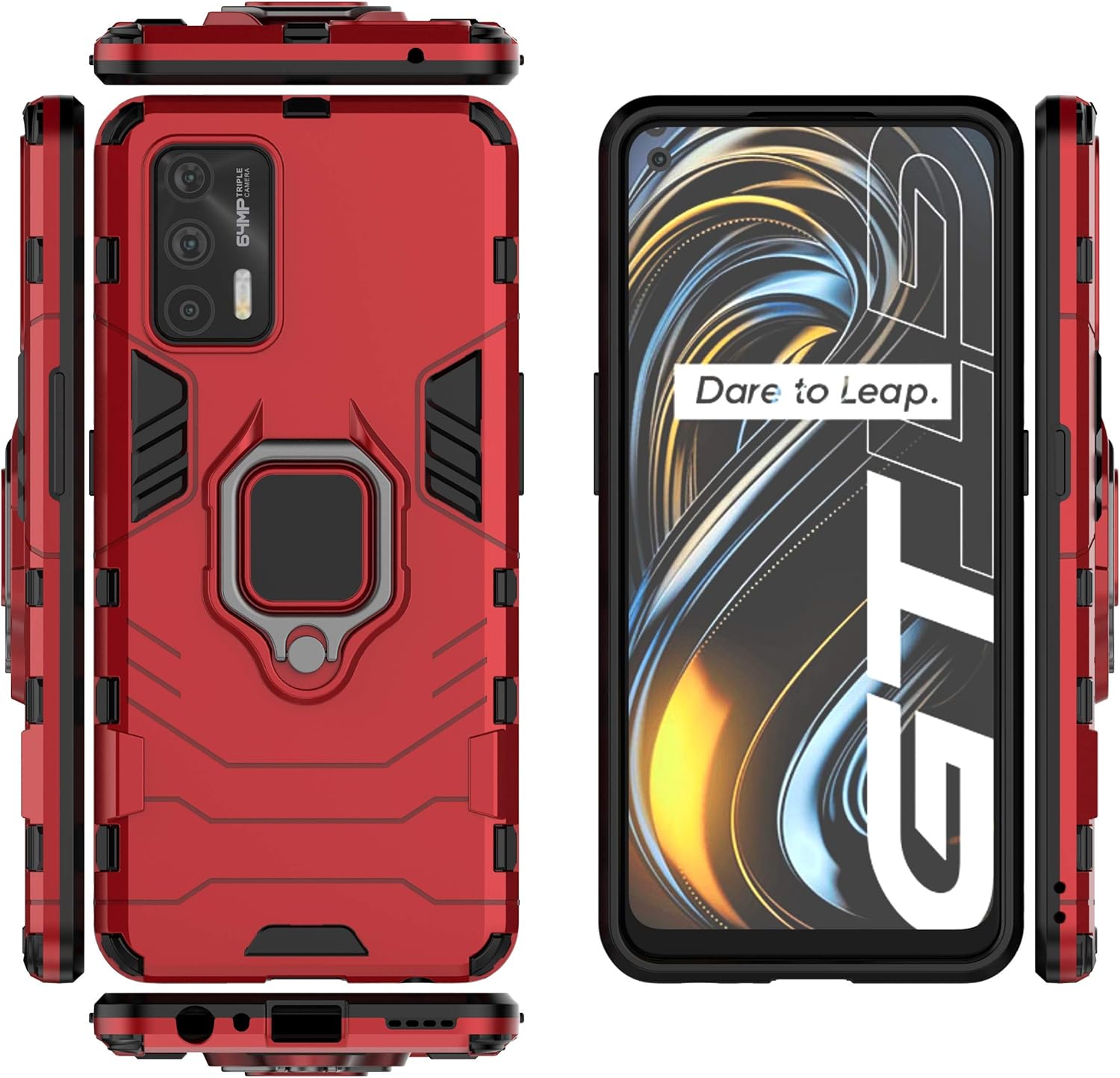 Compatible with Realme GT 5G / Realme GT Neo Case Cover ,Compatible with Realme Q3 Pro 5G Case Ring Stand 2 in 1 Phone Case Cover Red