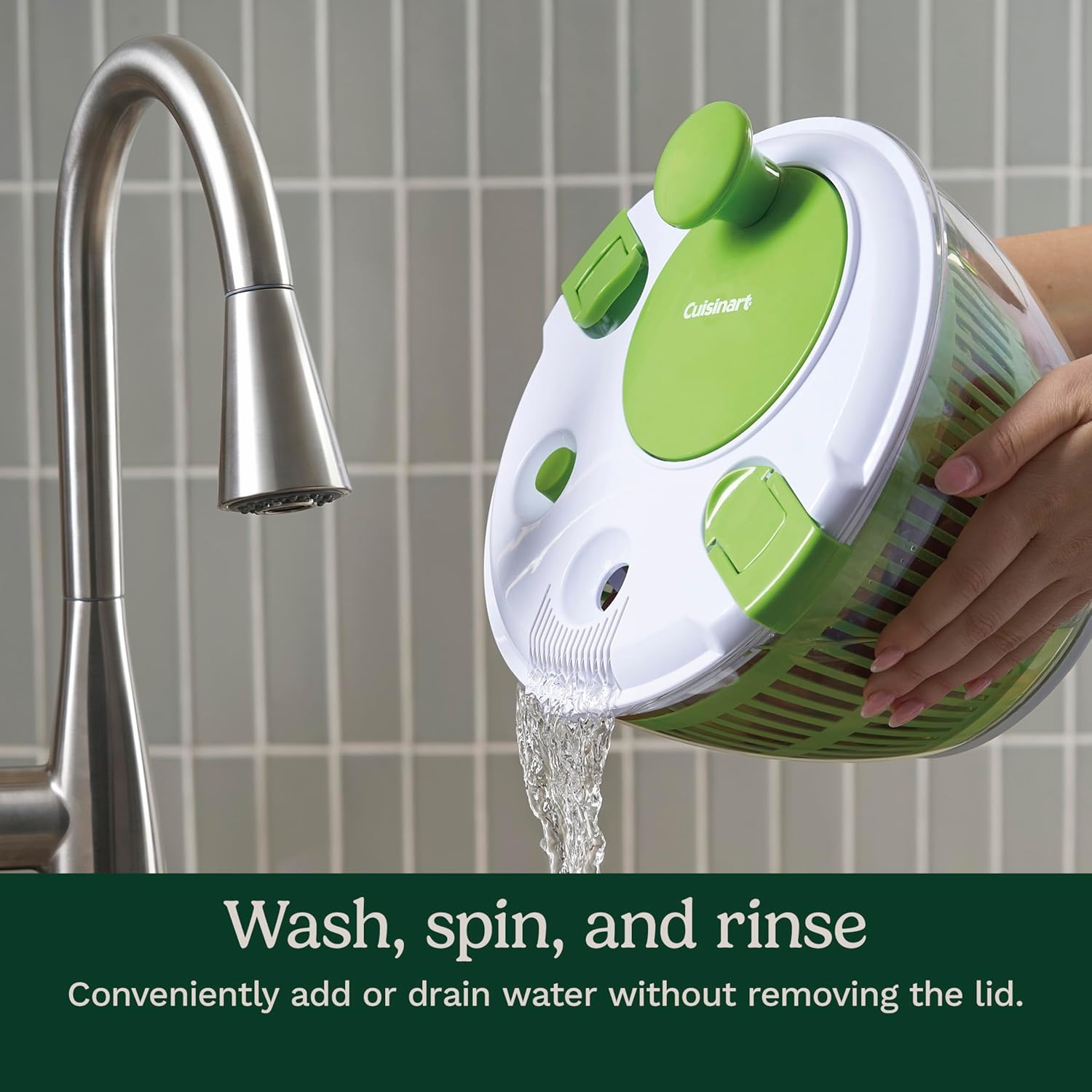 QUICK & CONVENIENT: Wash and spin-dry salad greens, fruits, and vegetables effortlessly with the Cuisinart 5qt Large Salad Spinner.