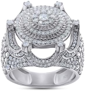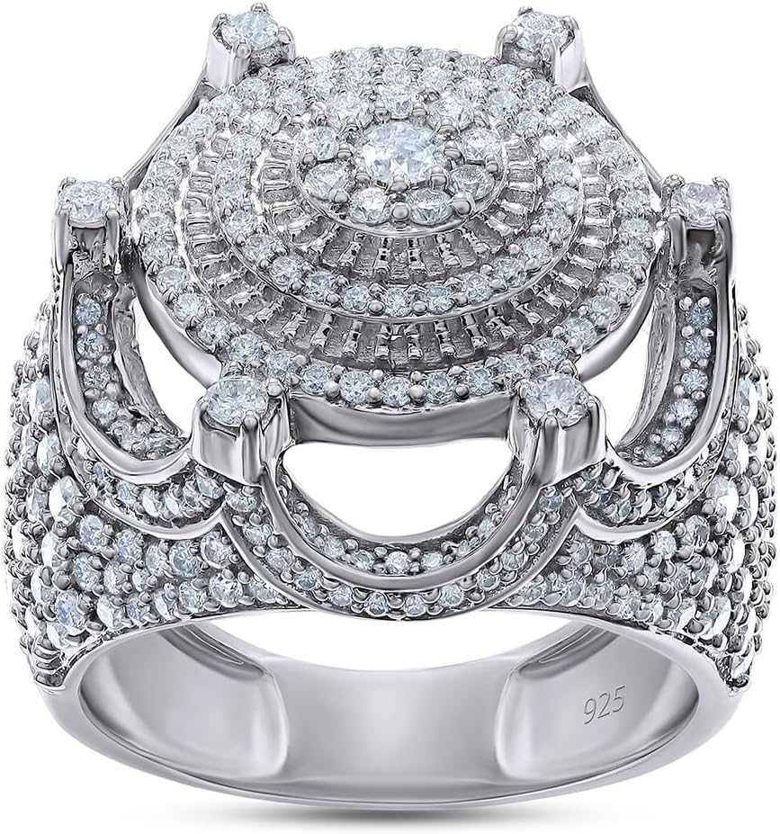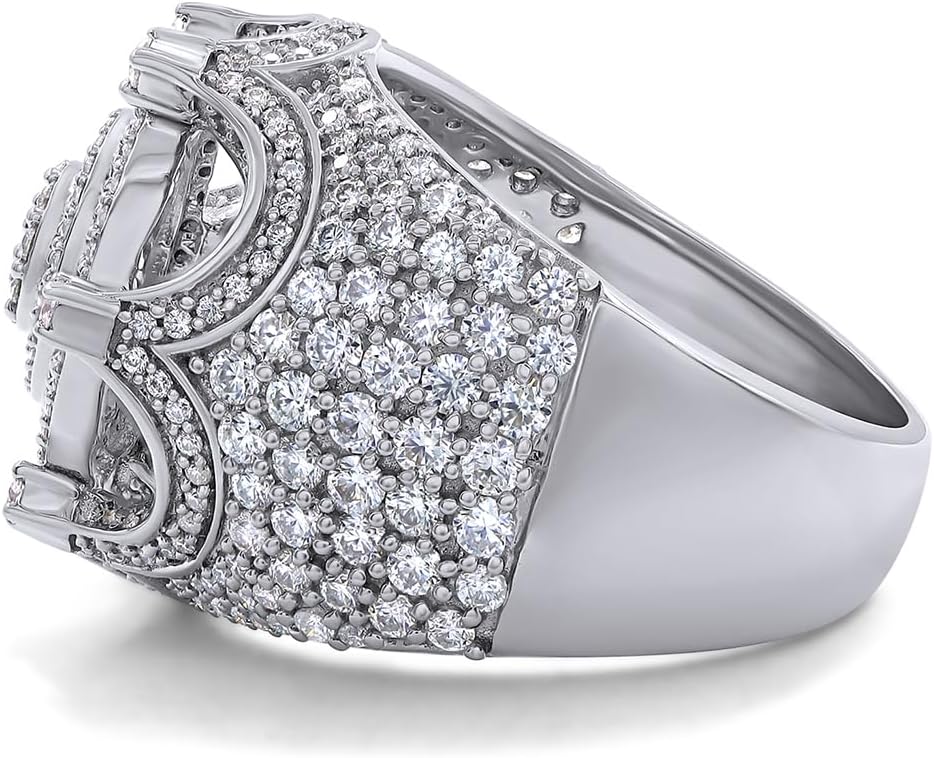 Men Wedding Engagement Circle Cluster Band Round Cut Lab Created Moissanite & Lab Grown Diamond King Crown Ring In 925 Sterling Silver 10K & 14K Solid Gold Jewelry Gift For Him 3 Cttw