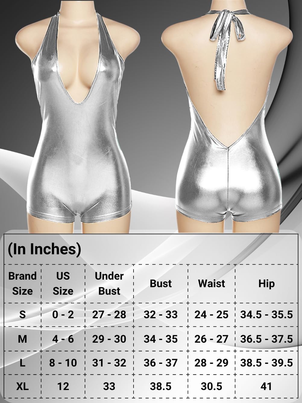 Sexy Metallic Bodycon Romper, Tie Halter, One Piece Backless Club Outfit